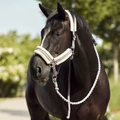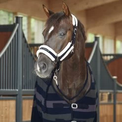 Horze Striped Halter With Fleece Fur & Matching Lead – Ocean View Blue