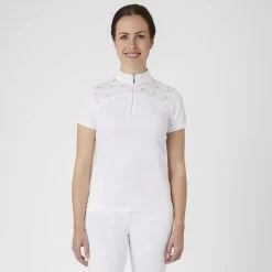 Horze Kaitlin Womens Short Sleeved Performance Show And Training Shirt – White