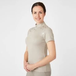 Horze Kaitlin Womens Short Sleeved Performance Show And Training Shirt – Plaza Taupe Light Brown
