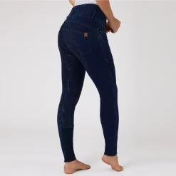 Horze Kaia Womens High Waist Denim Silicone Full Seat Breeches – Dark Blue