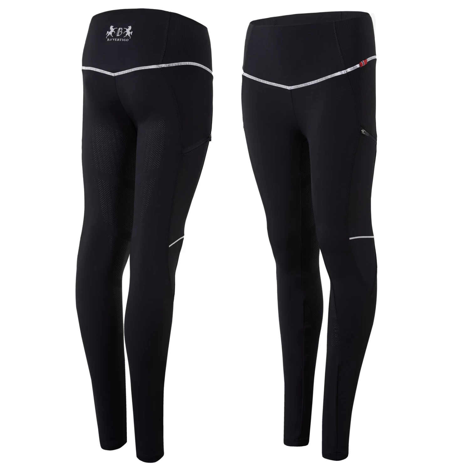 Our B Vertigo Adara riding tights are equipped with a super stylish high waist with elastic ribbed sides for extra comfort. The breathable fabric feels great on young riders’ skin without them having to worry about overheating. Zipper thigh pockets keep their phone safe and in reach at all times. Contrasting stitching adds to the stunning shape of these tights. Pair them with the matching B Vertigo Adara shirt for a full active outfit.