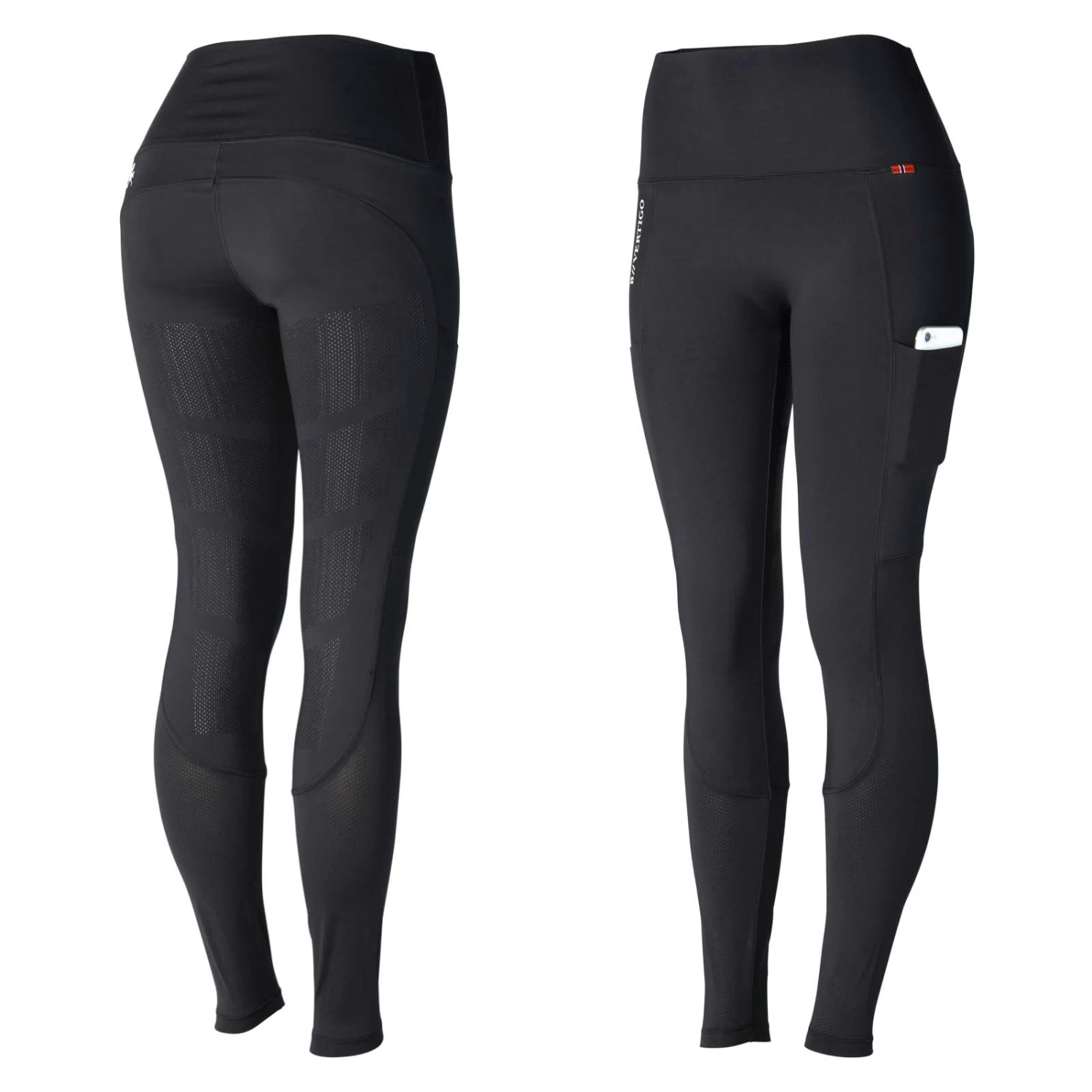 The B Vertigo Adelaide riding tights are made from breathable material with anatomically placed seams that provide the perfect fit. Firming fabric and lightweight mesh inserts make sure you can focus on your riding without having to worry about your tights. Thigh pockets keep your phone safe and within reach. The high waist is great for tucking your shirt in, and the full seat is made from silicone that keeps you safely in the saddle.