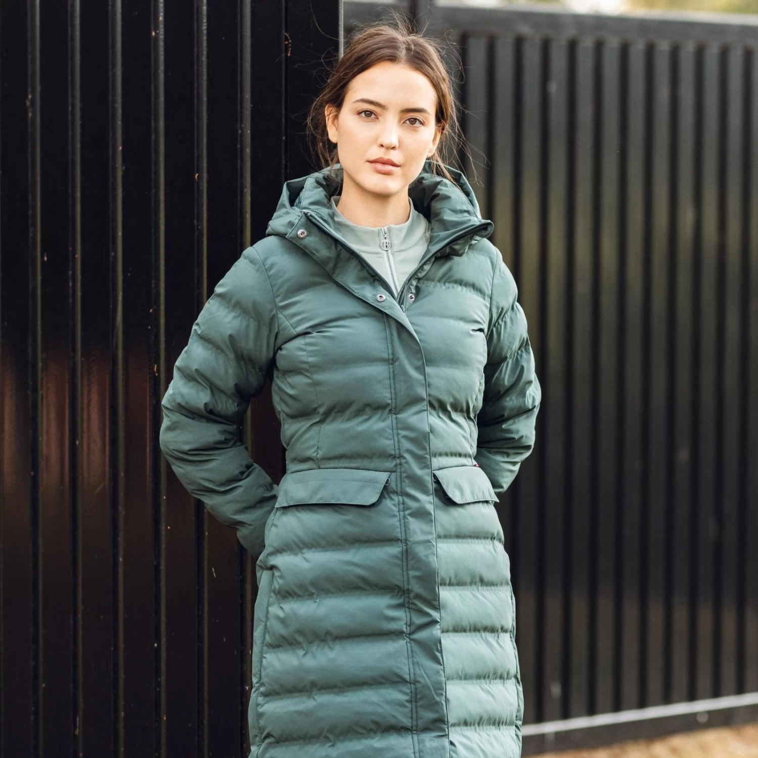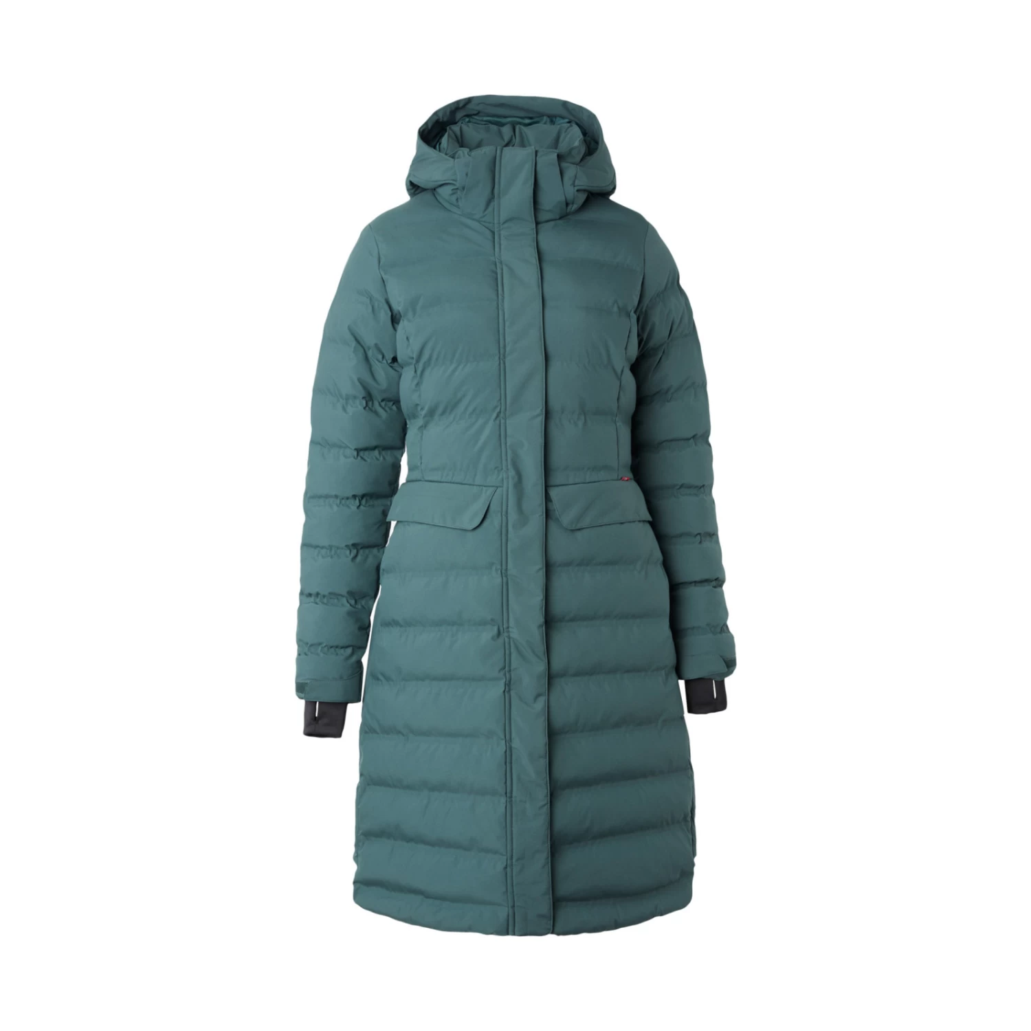 Introducing our innovative waterproof parka Celeste. Designed to keep you warm, dry, and comfortable in style. Adaptibility is key, which is why this jacket features a removable hood, an adjustable waist and adjustable flaps at the sides to create a flattering silhouette. Zipper pockets under flaps allow you to safely store your essentials. The heat seam quiliting creates a stylish look and ensures optimal heat retention, which makes the jacket perfect for layering over your favorite baselayer. Embrace the colder seasons, knowing this jacket has you covered!