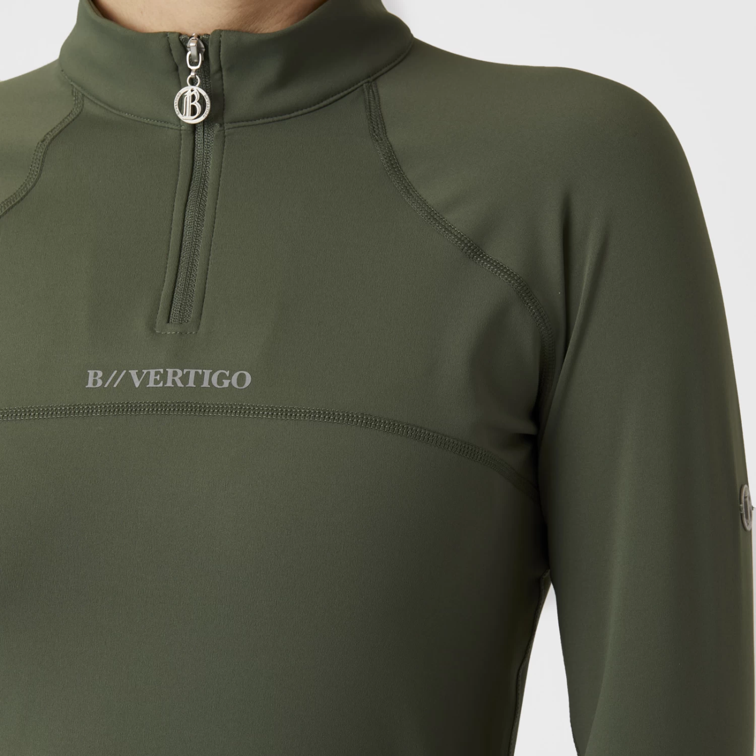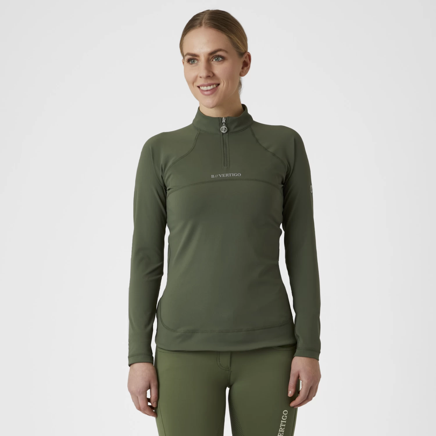 Our B Vertigo Davina shirt is breathable and quick-drying, perfect for training. Soft fabric makes it super comfortable to wear all day. A back pocket keeps your phone in reach. The front zipper adds ventilation and comfort. Pair this shirt with our B Vertigo Davina breeches for a full outfit.