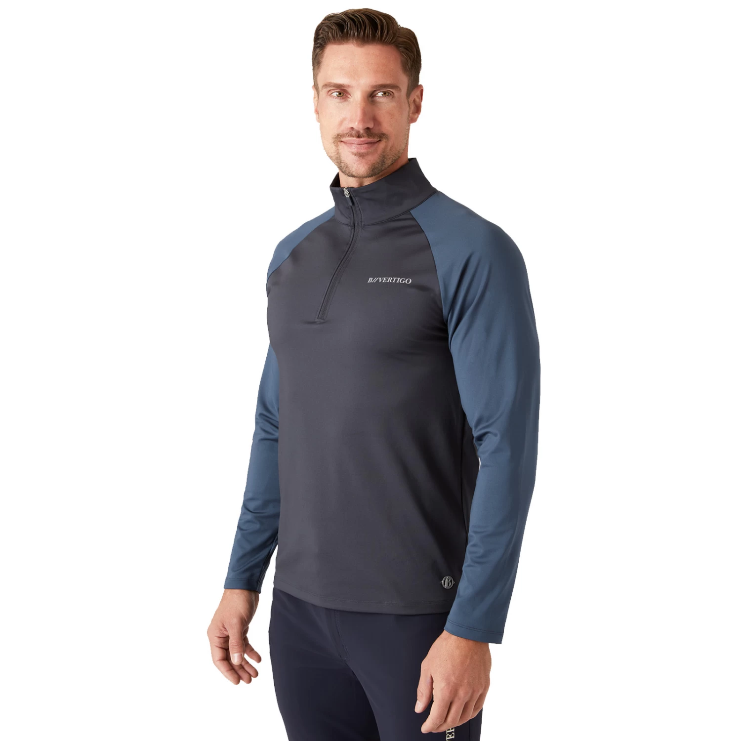 Our B Vertigo training shirt for men is made from functional material that is perfect for your daily training. Raglan sleeves do not restrict your movement, and the zipper can add warmth or ventilation depending on the temperature. The sporty cut and classic colors make this shirt versatile and timeless. Pair it with your favorite breeches, jacket and boots, and you are good to go!