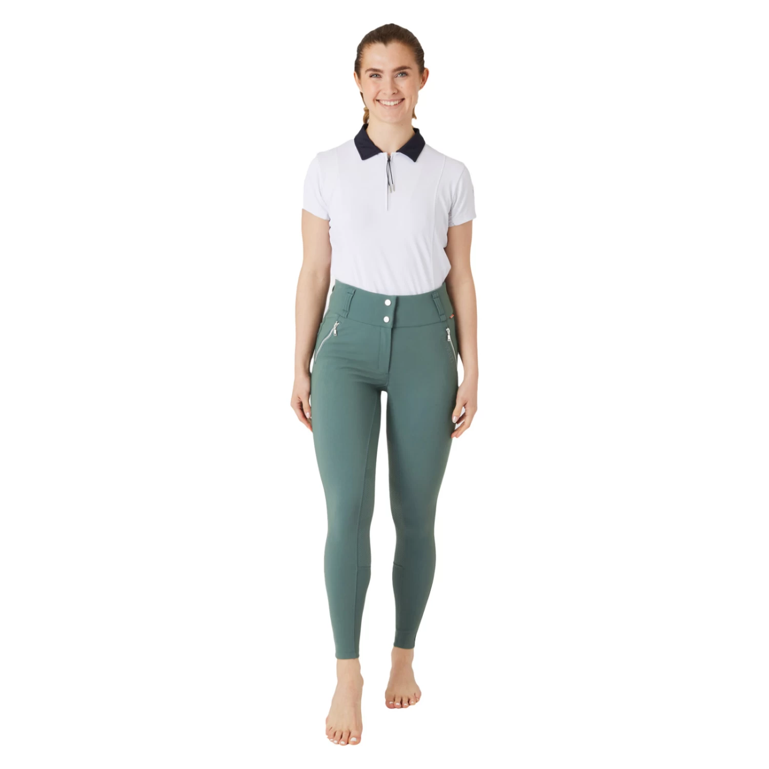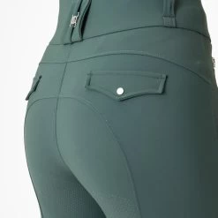 Made of a an all-season fabric with great stretch and a mid to high rise, these breeches are ultra comfortable. Want to take you phone with you? No problem, thanks to the deep pockets that fit even larger phone models just fine. For a touch of style, fake pockets have been added on the backside. The silicone full grip, mostly prefered by dressage riders, provides a good hold in the saddle.