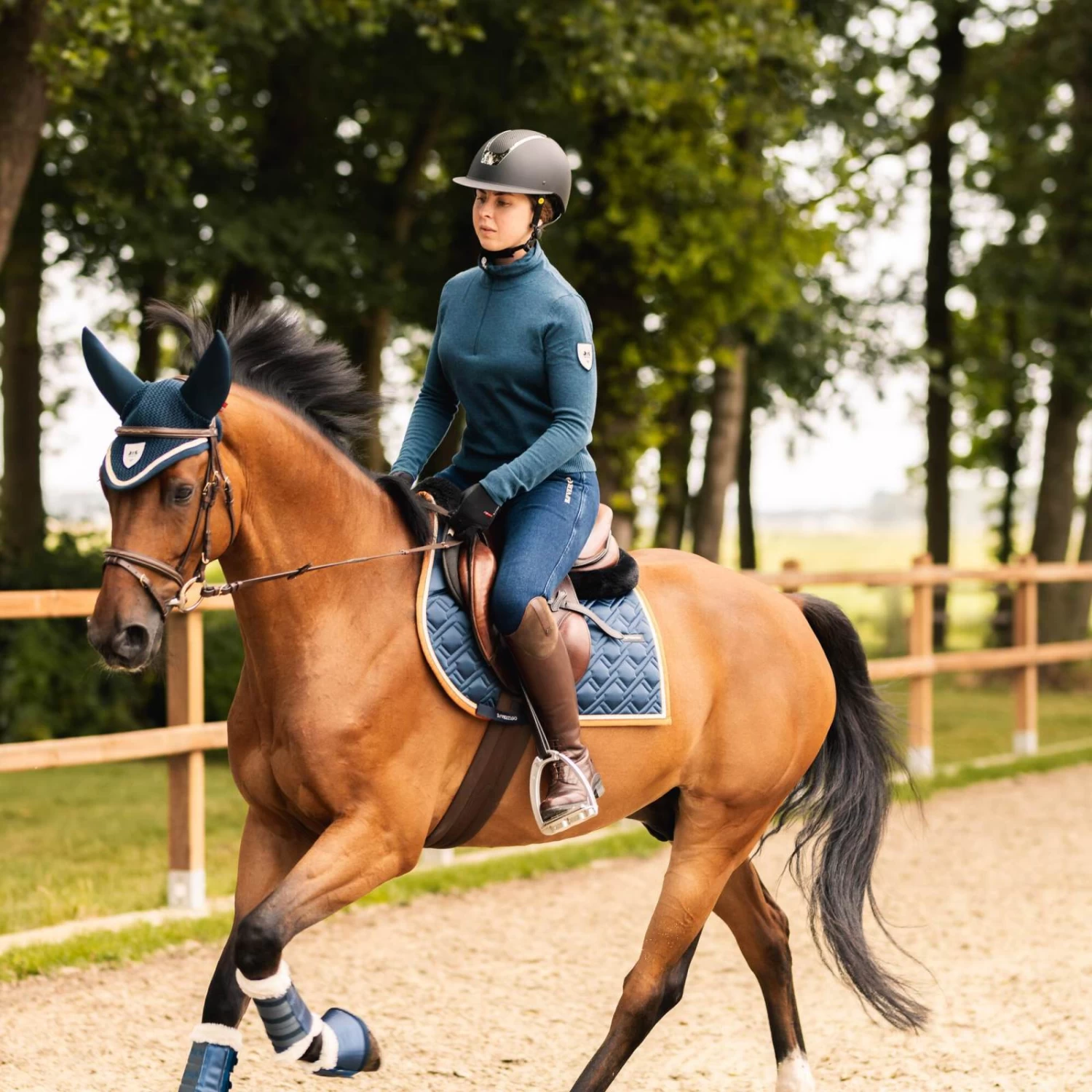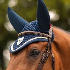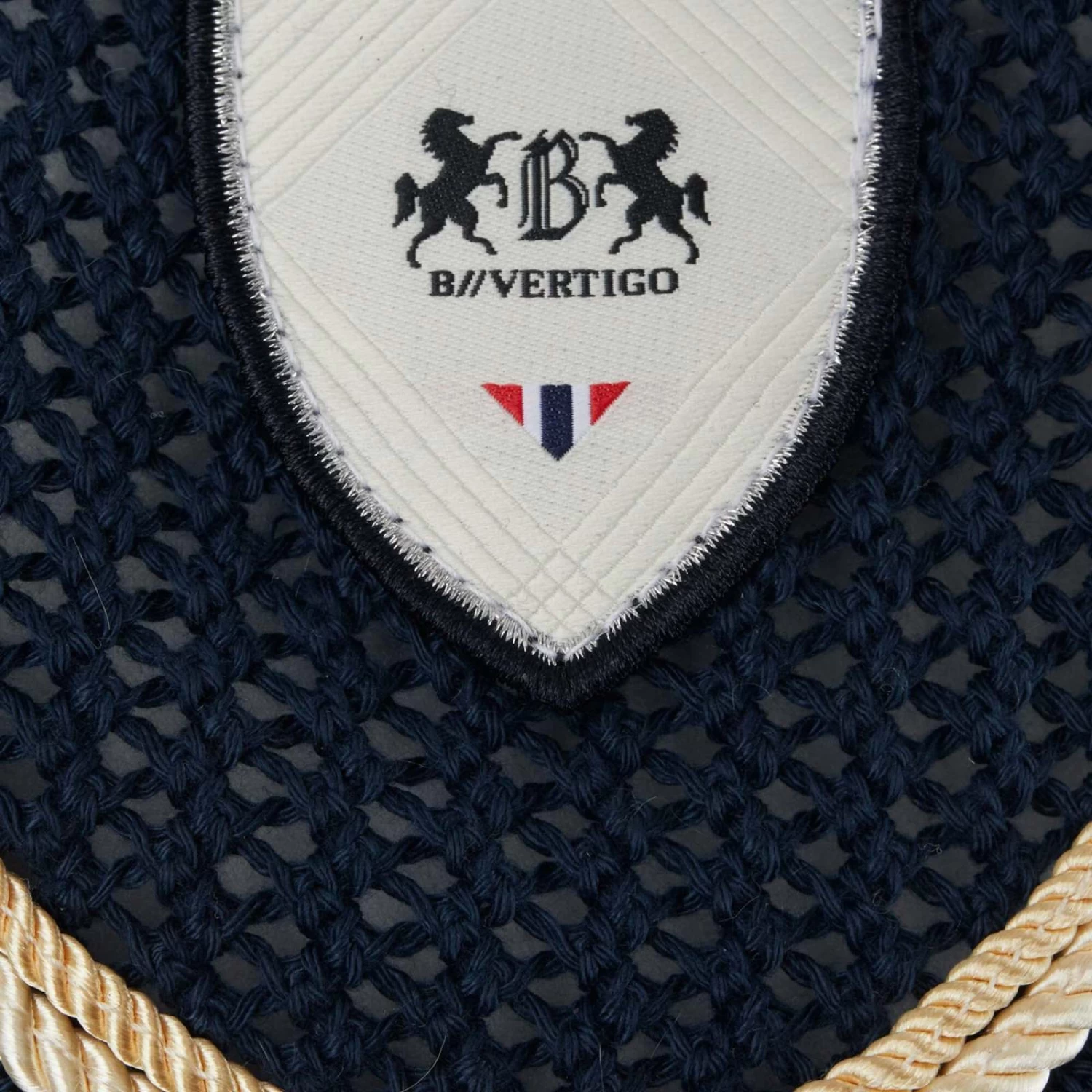 Classic crochet main part and stretchable soundless ears with coolmax fabric to keep your horse cool, even on warm days. B Vertigo logo batch in the center.