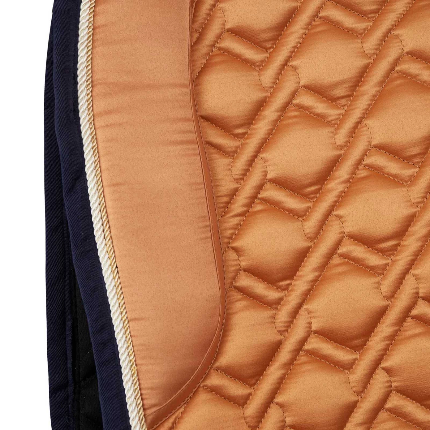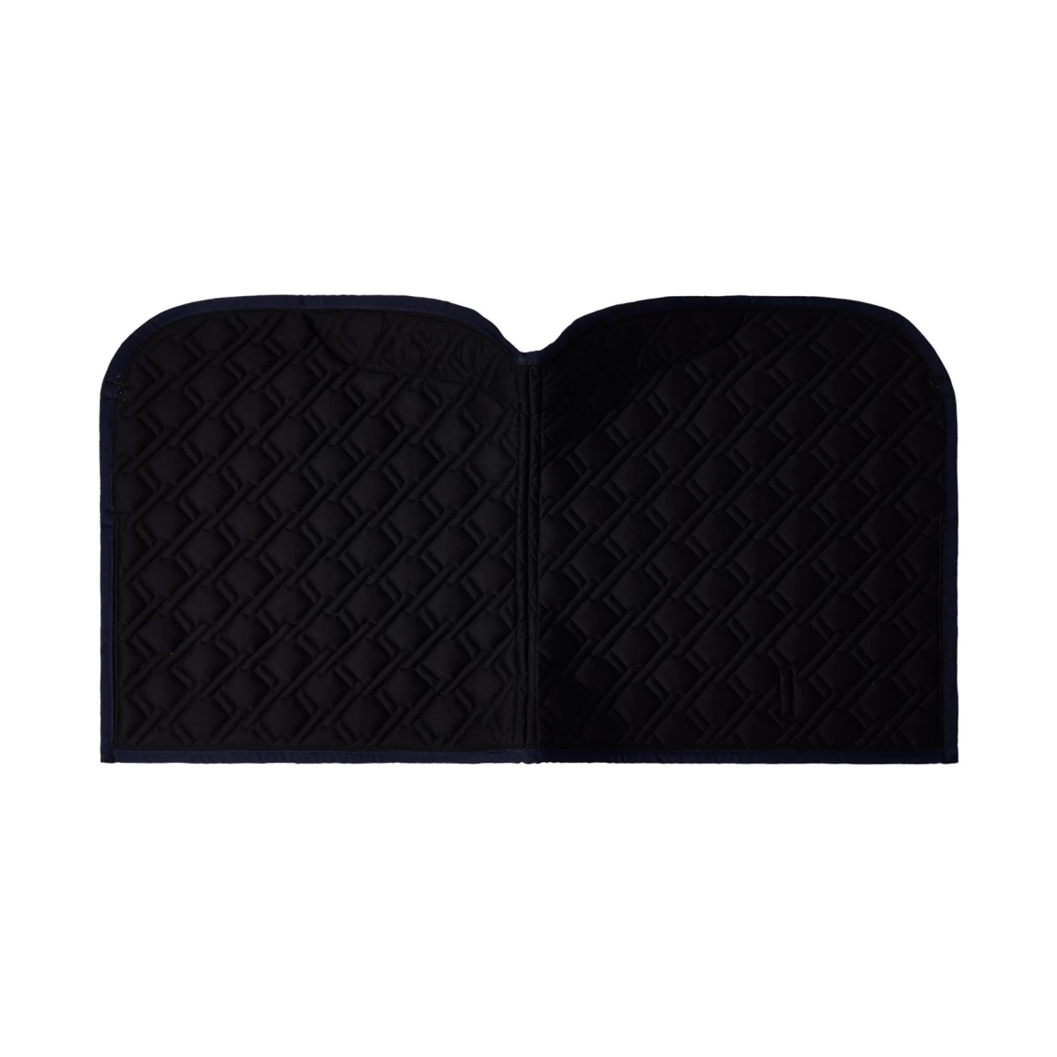 This saddle pad features an anatomic shape, ensuring a perfect fit for your horse’s back. The anti-slip cushion helps to keep the saddle in place during movement. The large fence-like quilting adds a touch of elegance. With contrast piping and cords, this saddle pad stands out with its sophisticated design. The girth strap is adorned with logo embroidery, adding a subtle branding detail. Complete with a delicate B Vertigo logo on the left side, this saddle pad showcases attention to detail. Elevate your dressage performance with the B Vertigo Evolve Dressage Saddle Pad.