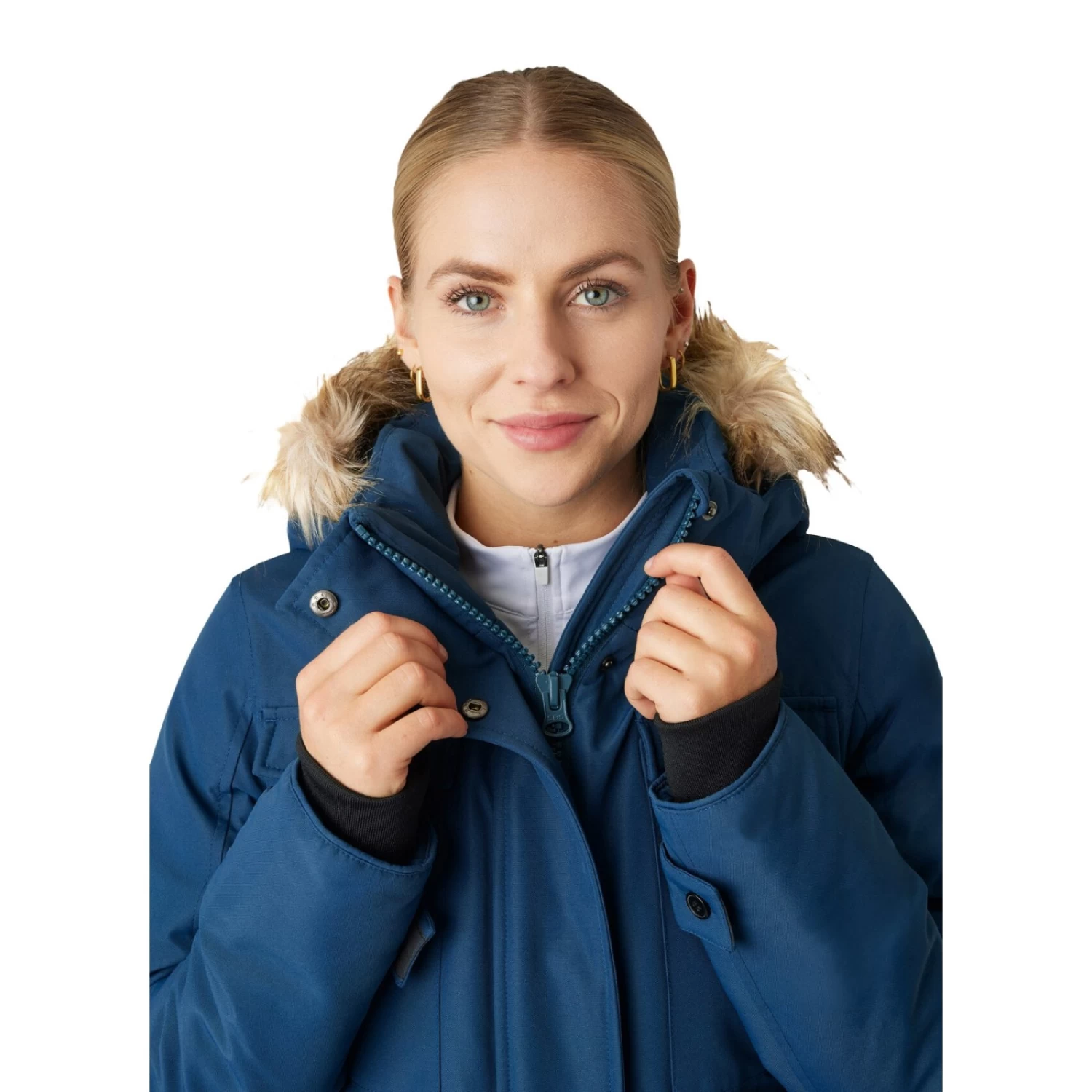 With its 3000mm waterproof rating and 3000mvp breathability, it offers excellent protection against rain and wind while allowing moisture to escape for enhanced breathability. The jacket features a removable hood and fur, allowing you to customize your look and adapt to different weather conditions. The opening at the back with a zipper adds a stylish touch and improves mobility. The storm cuffs and reflective cuff straps provide additional protection and visibility. With adjustable strings inside to tighten around the waist, you can achieve a perfect fit. The front flap pockets and chest pockets offer ample storage space for your essentials.
