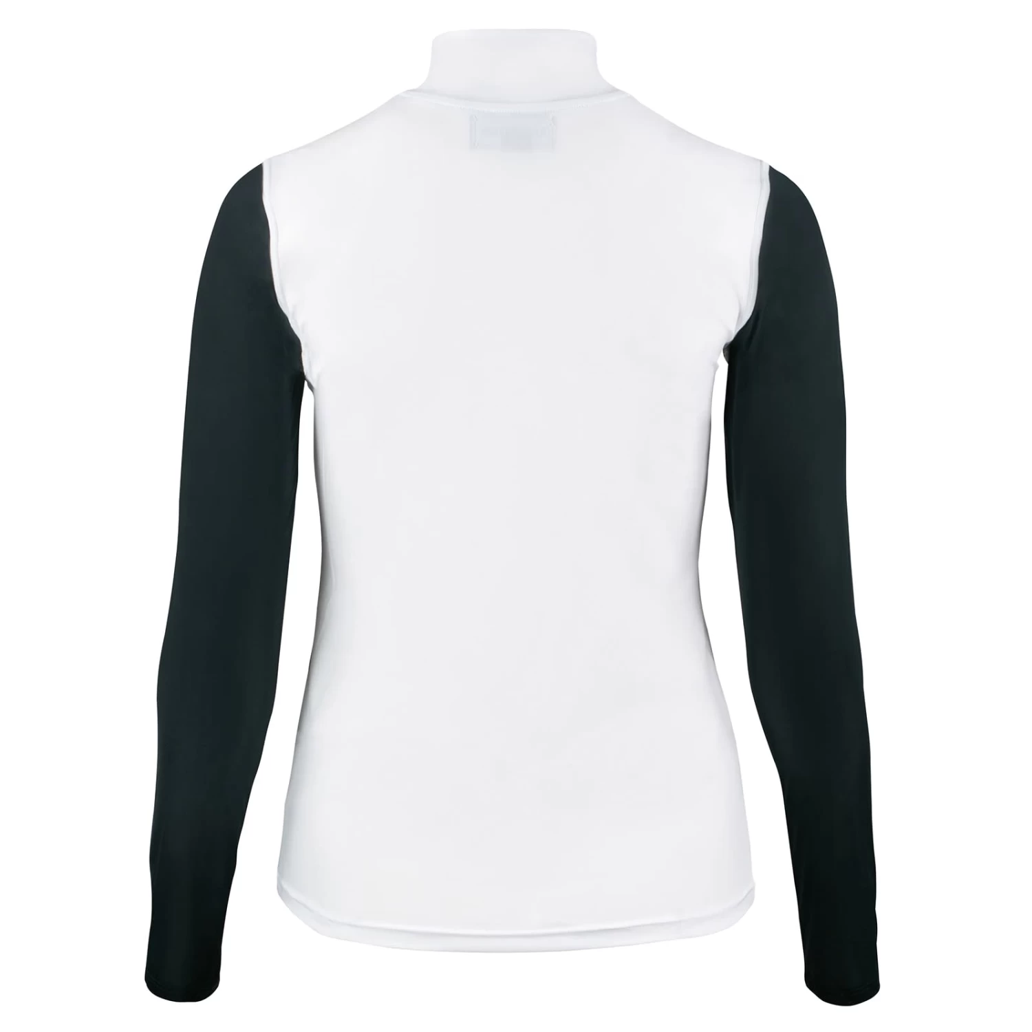 Features slim fitting arms in super soft fabric. Cool touch, breathable fabric feels refreshing against your skin and will keep you relaxed in the saddle. The shirt is designed to be extra comfortable, making it ideal for training, while the white collar means it can also be used in shows. Look and feel great in the B Vertigo Iris Women’s Long Sleeve Shirt.