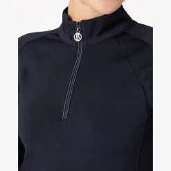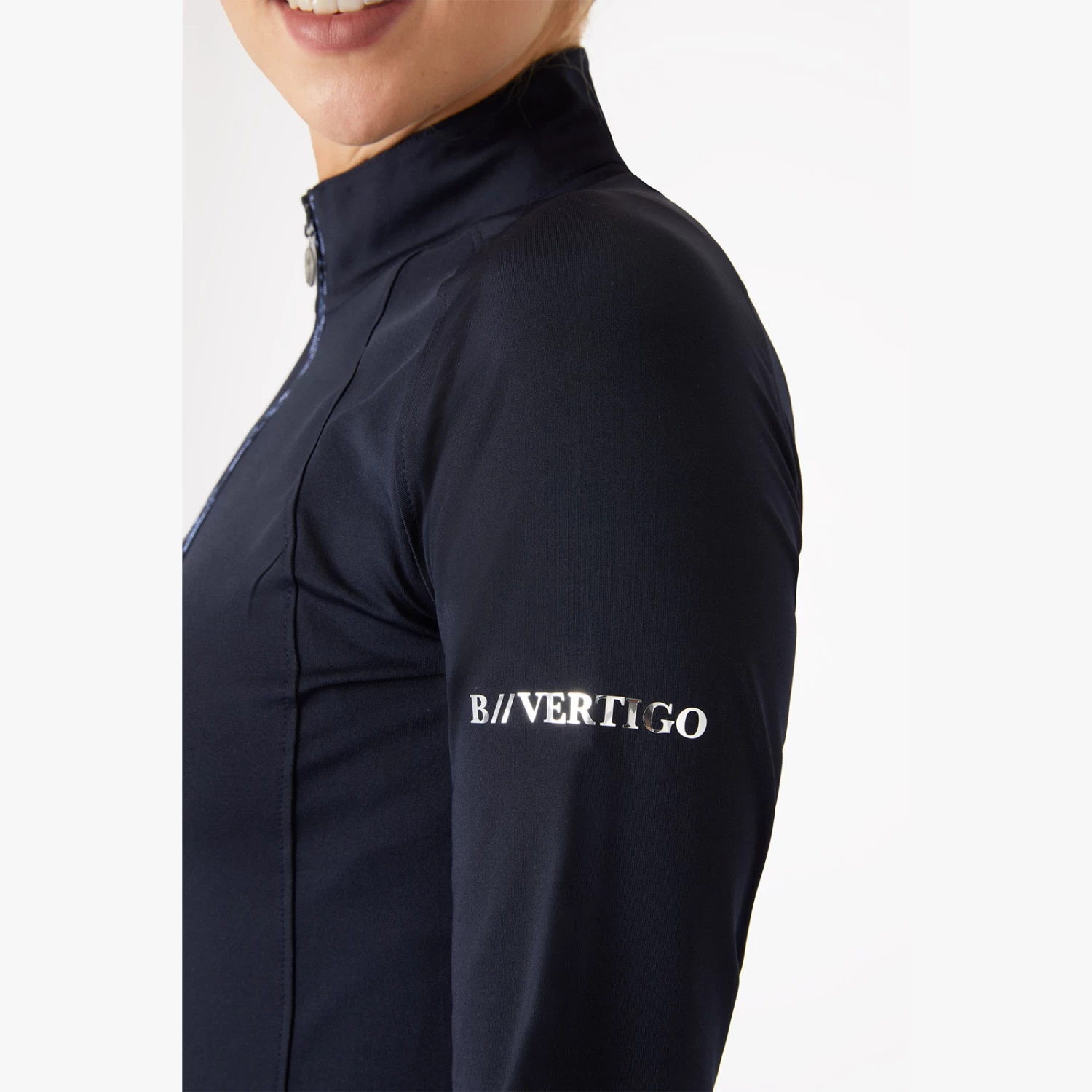 The B Vertigo Linnea shirt is made from functional, breathable material. The high collar with zipper can add both warmth and ventilation depending on your need. Flattering front and back seams look stunning while neutral colors are easy to incorporate into your riding wardrobe. Pair this shirt with our matching B Vertigo Linnea sweatshirt jacket (#33728) for a full look!