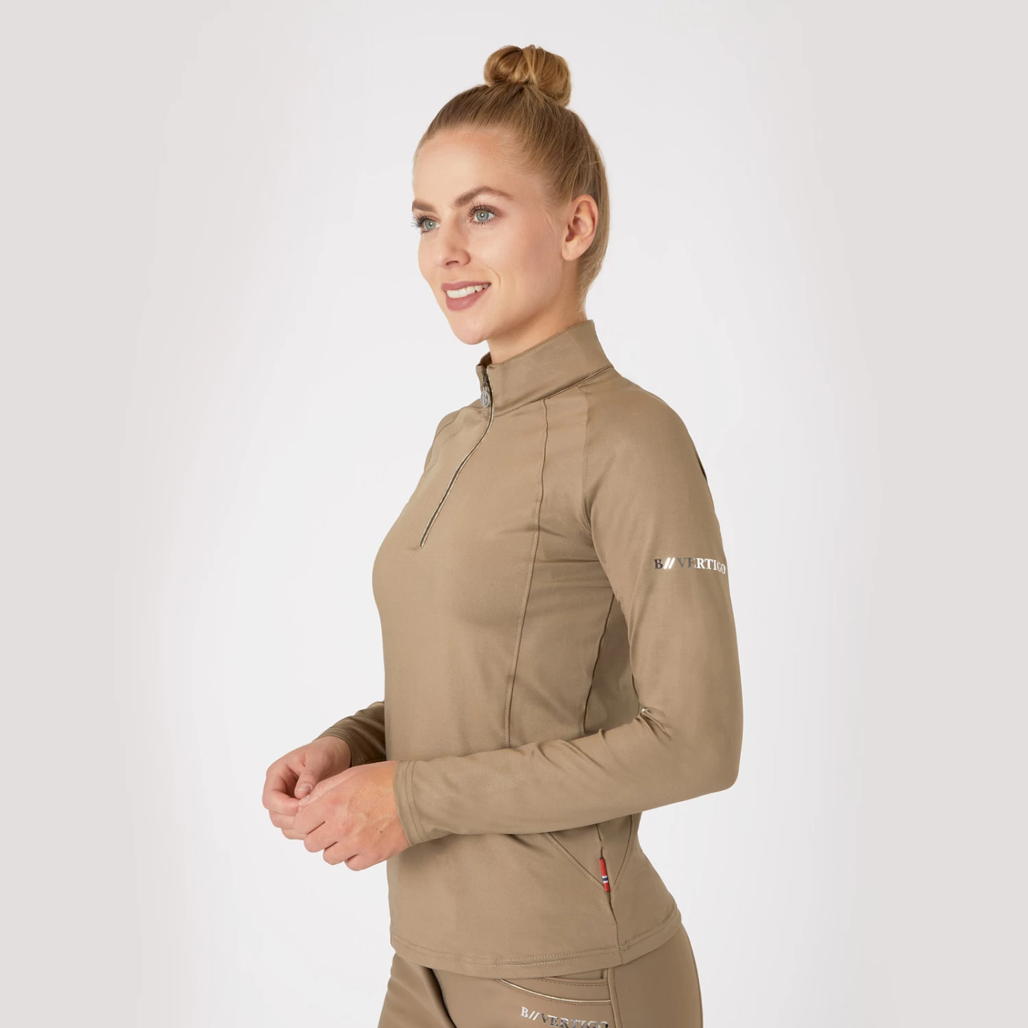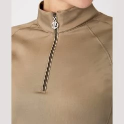 The B Vertigo Linnea shirt is made from functional, breathable material. The high collar with zipper can add both warmth and ventilation depending on your need. Flattering front and back seams look stunning while neutral colors are easy to incorporate into your riding wardrobe. Pair this shirt with our matching B Vertigo Linnea sweatshirt jacket (#33728) for a full look!