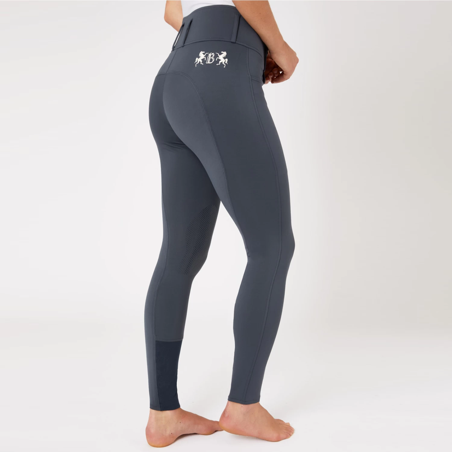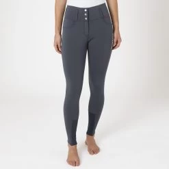Our B Vertigo Meghan breeches are equipped with a high waist that holds them in place. The silicone knee patch provides flexibility in the saddle. Elastic leg bottoms fit perfectly under your favorite boots. Classic colors are easily paired with your riding tops. Two deep front pockets keep your phone safe. Also available as full grip version.