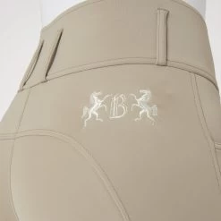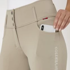 Our B Vertigo Meghan breeches are equipped with a high waist that holds them in place. The silicone knee patch provides flexibility in the saddle. Elastic leg bottoms fit perfectly under your favorite boots. Classic colors are easily paired with your riding tops. Two deep front pockets keep your phone safe. Also available as full grip version.