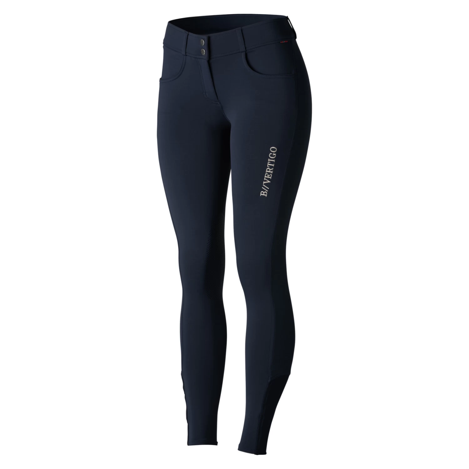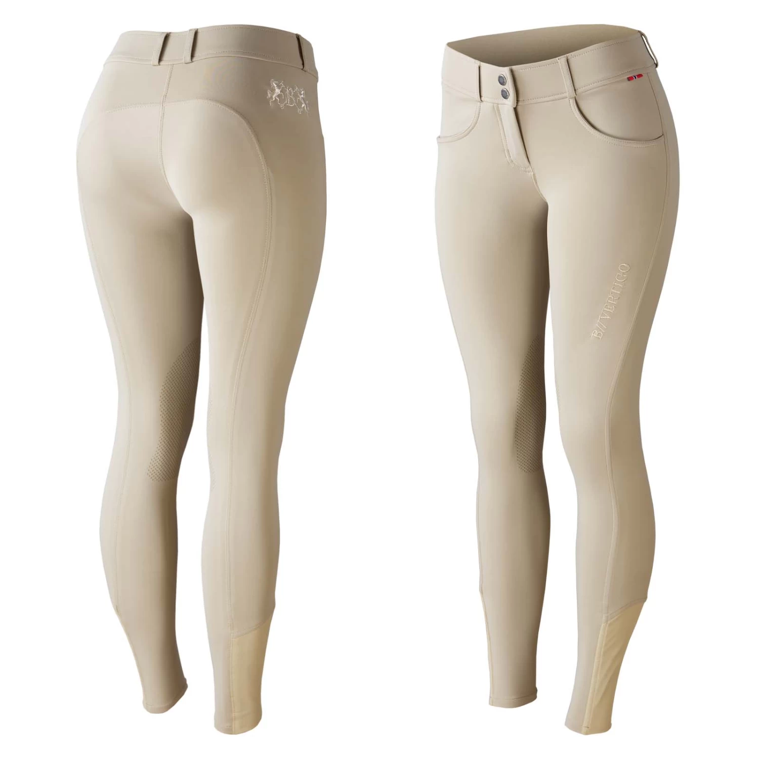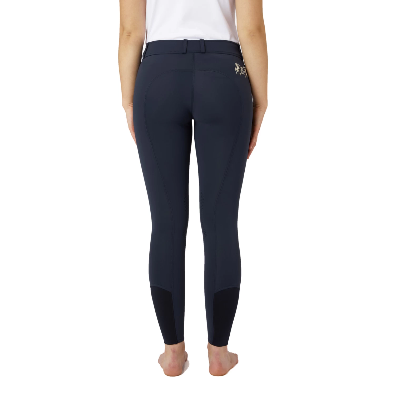 Combining a classic medium waist and knee patch with modern silicone print gives these knee patch breeches a current update. The lightweight fabric is fitted but with plenty of stretch for freedom of movement in the saddle. Elastic leg bottoms fit perfectly in your favorite boots. Belt loops make it easy to accessorize with your belt of choice. Double front pockets give room for keys or horse treats.