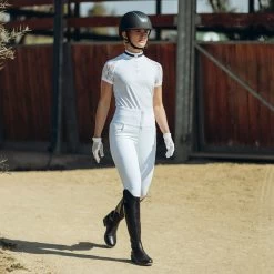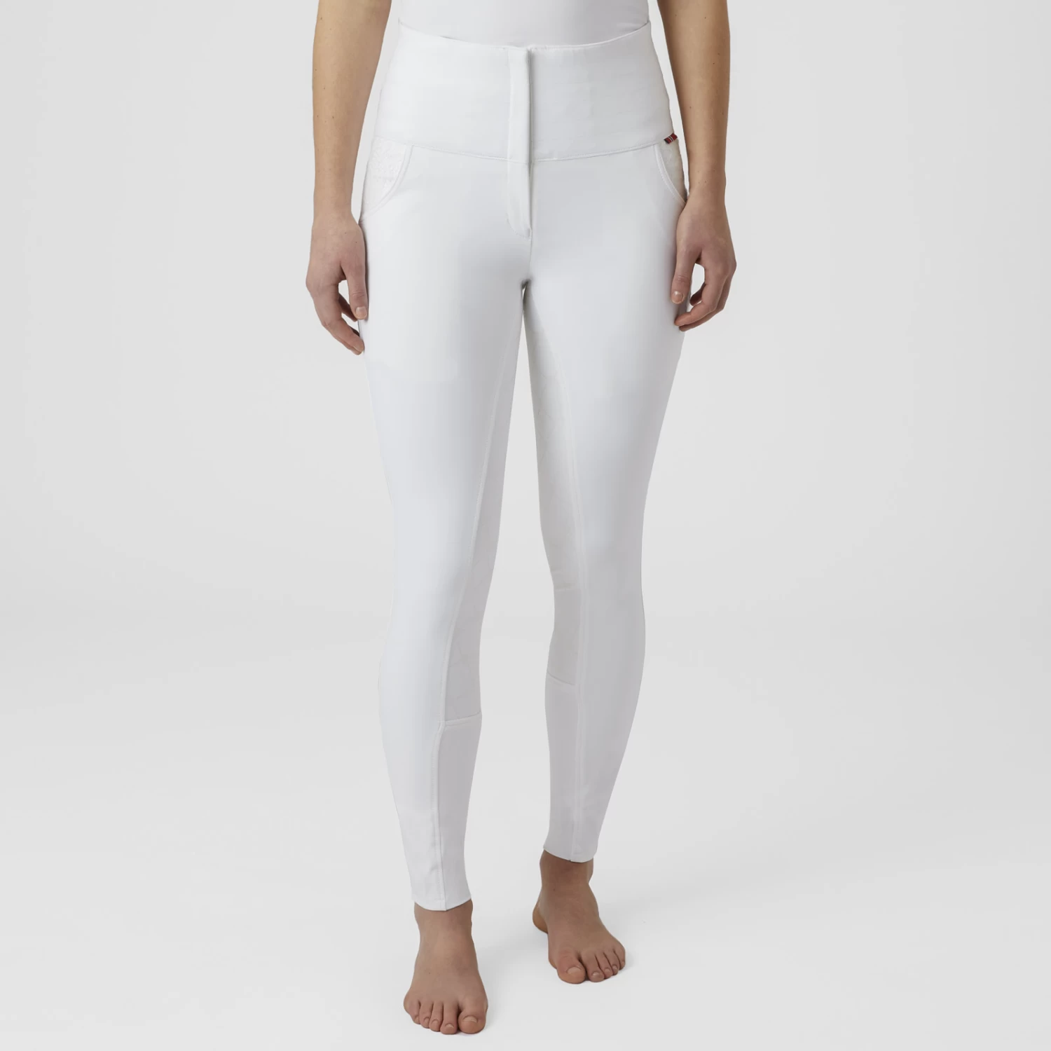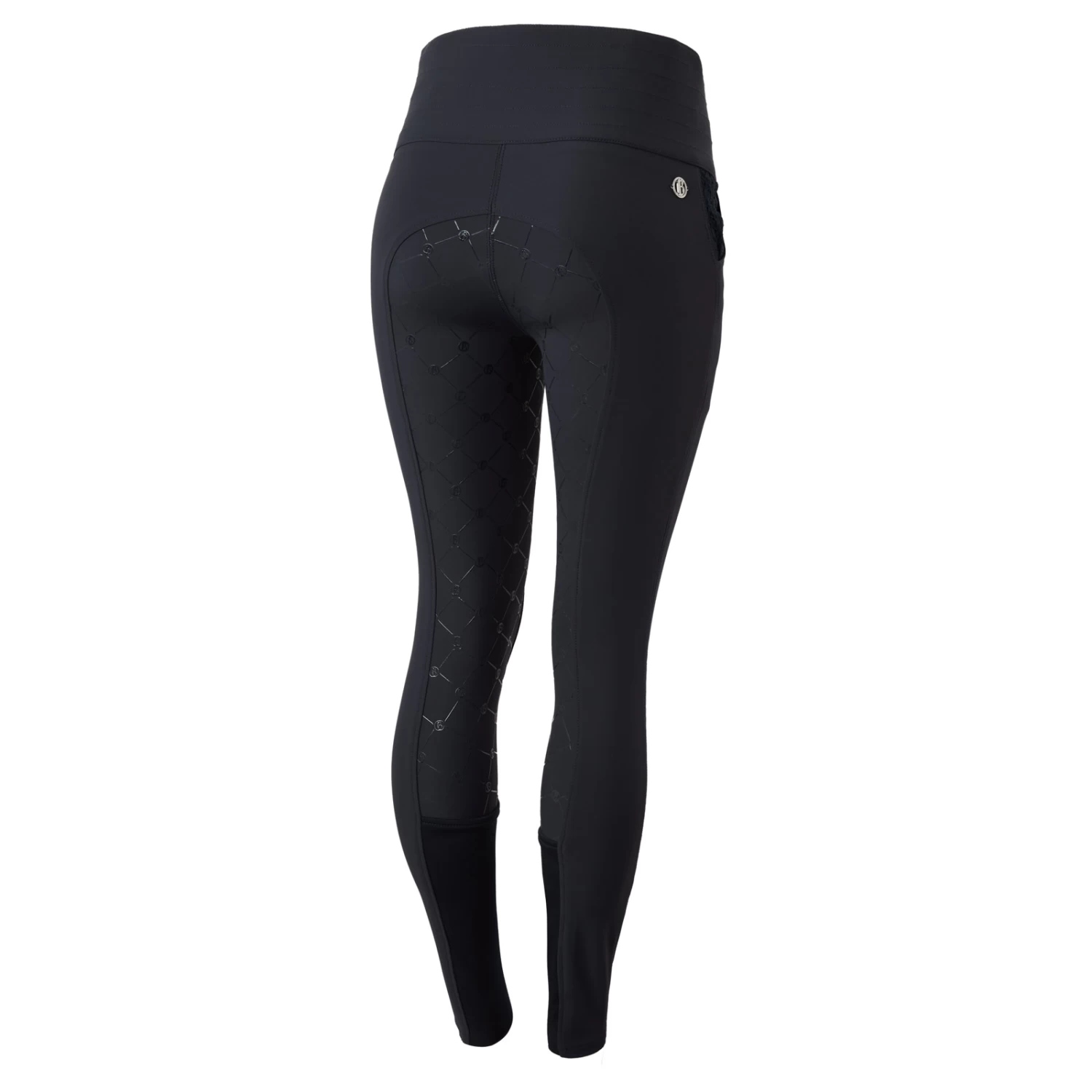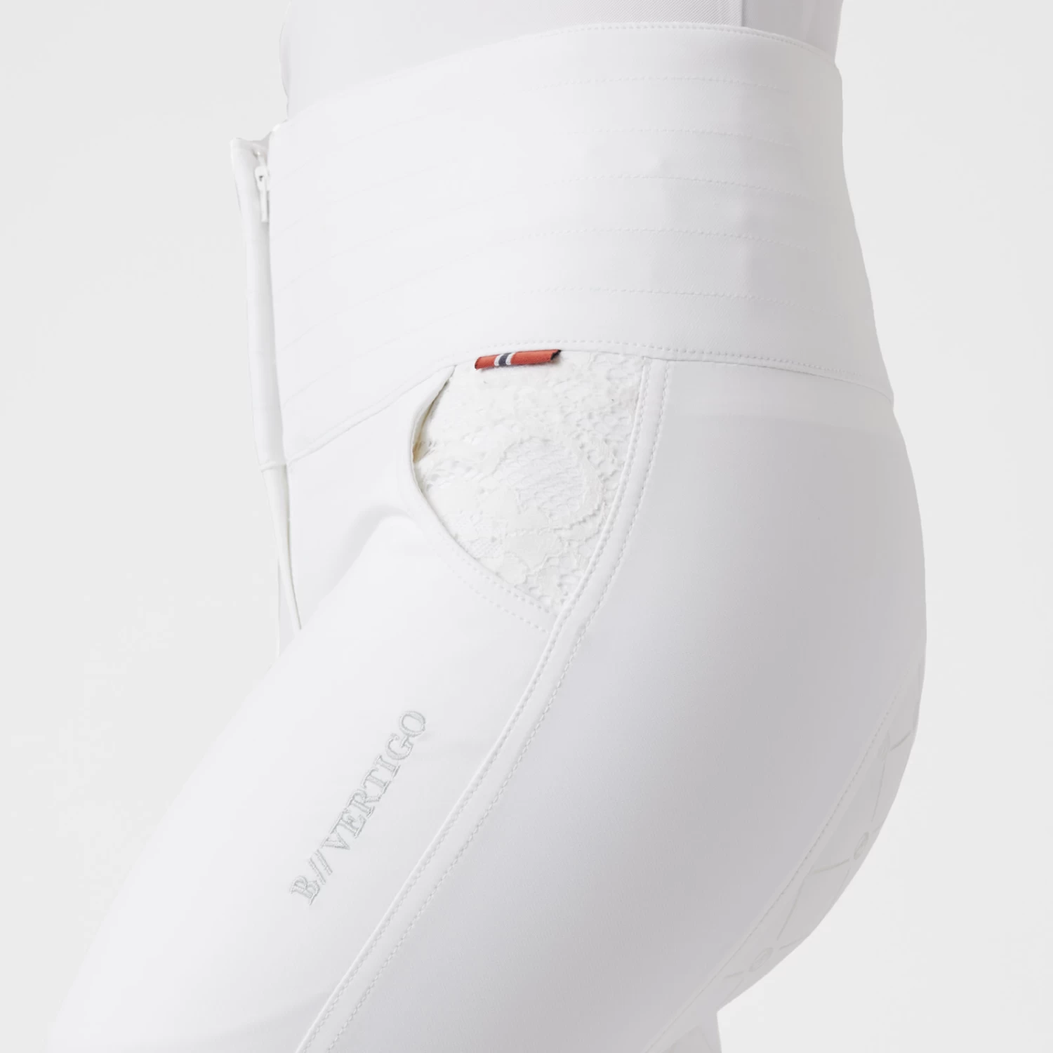 The B Vertigo Natalia breeches are designed with a high waist with hidden closure, making them super flattering and smooth around the waist. The pretty silicone pattern on the full seat provides grip to the saddle. Beautiful lace detail in the pockets adds a touch of elegance to these breeches. Combine them with our B Vertigo Natalia lace t-shirt (#36720) for a full look.