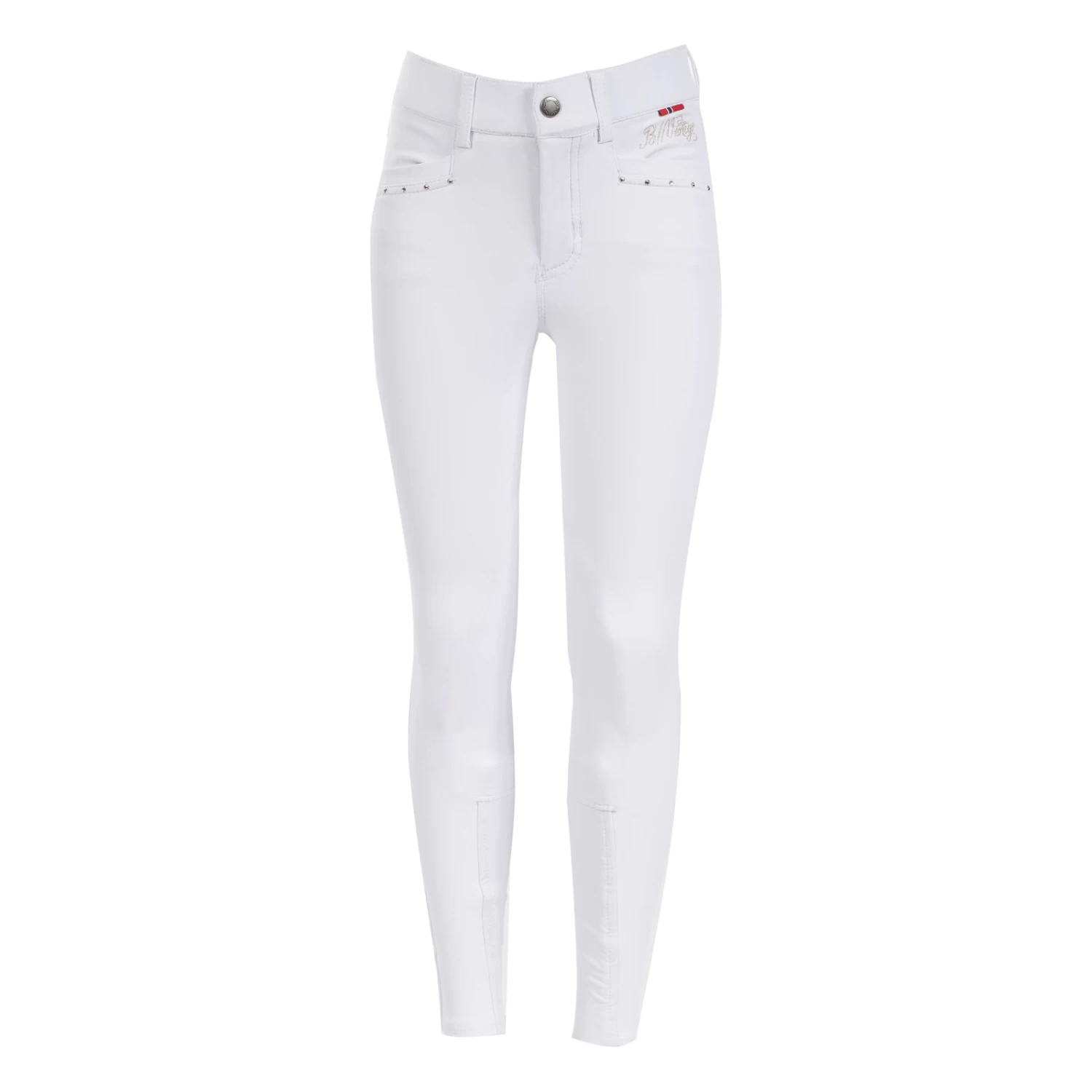 Kids love details such as crystal, rhinestones and bling. These breeches are a mini version of B Vertigo’s favorite style for women so girls can be just like mom. Additional design details include a Gutos button, a YKK zipper, and a comfortable elastic lower leg. The stretch fabric moves with active riders and offers plenty of support with the mid-rise waist. Your young rider will love spending time in the stable wearing these trendy breeches. The Girl’s Olivia Full Seat Breeches with Silicone Grip, by Horze, are made from 4-way stretch, breathable and functional BV Opti-pro fabric. These long-lasting, schooling pants feature eye-catching original Swarovski crystals, and are moisture-wicking to keep your young equestrian in comfort and looking great all day. Features BV Opti-pro fabric.