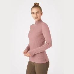 The knitted B Vertigo Ruth jumper is a classic piece for your riding wardrobe. The soft cable woolmix knit keeps you warm, and the high neck is adjustable with a zipper. It is perfectly combined with a padded vest, and will keep you warm on winter rides.