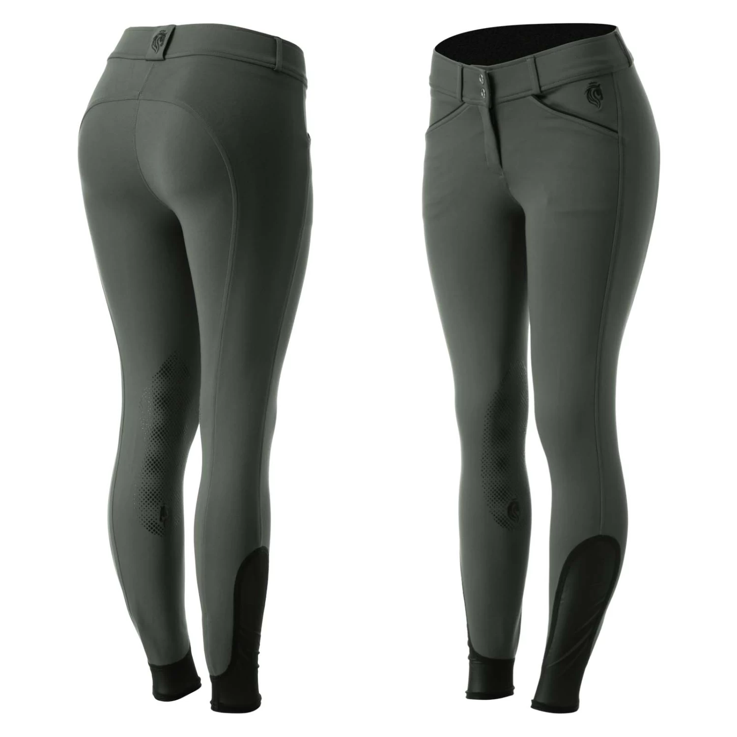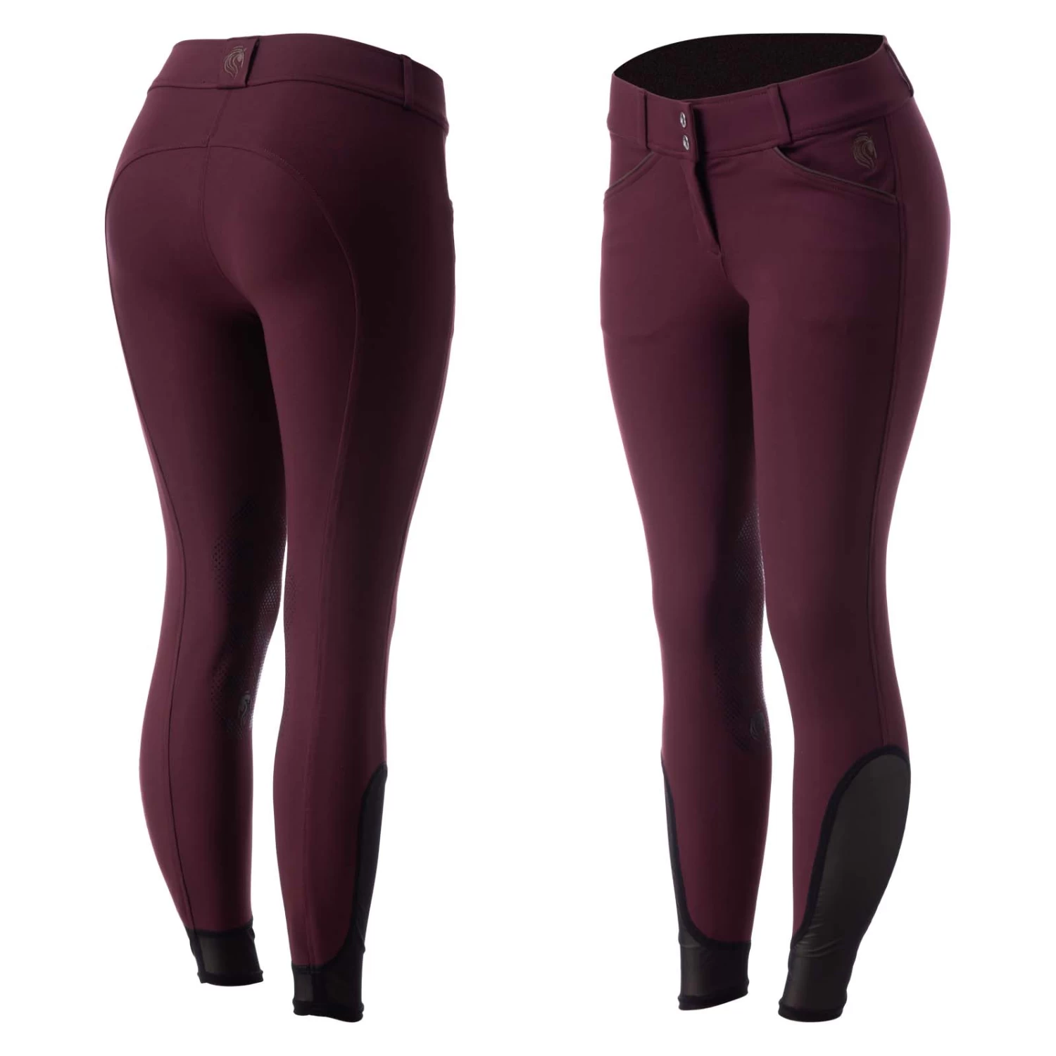 - Mid-rise fit, flattering waistband, slightly higher in the back for in-saddle comfort, and silicone grip inside to keep shirt neatly tucked in