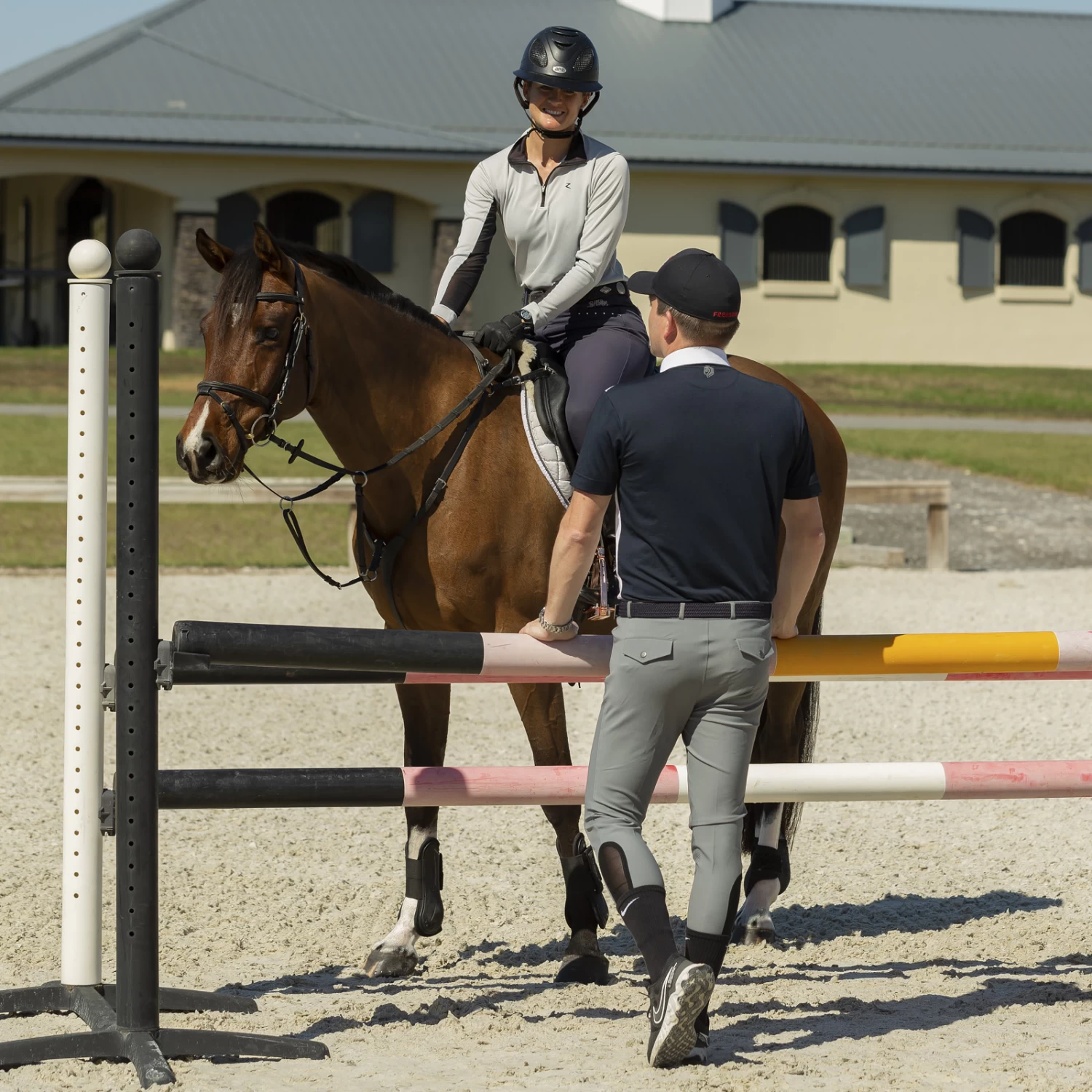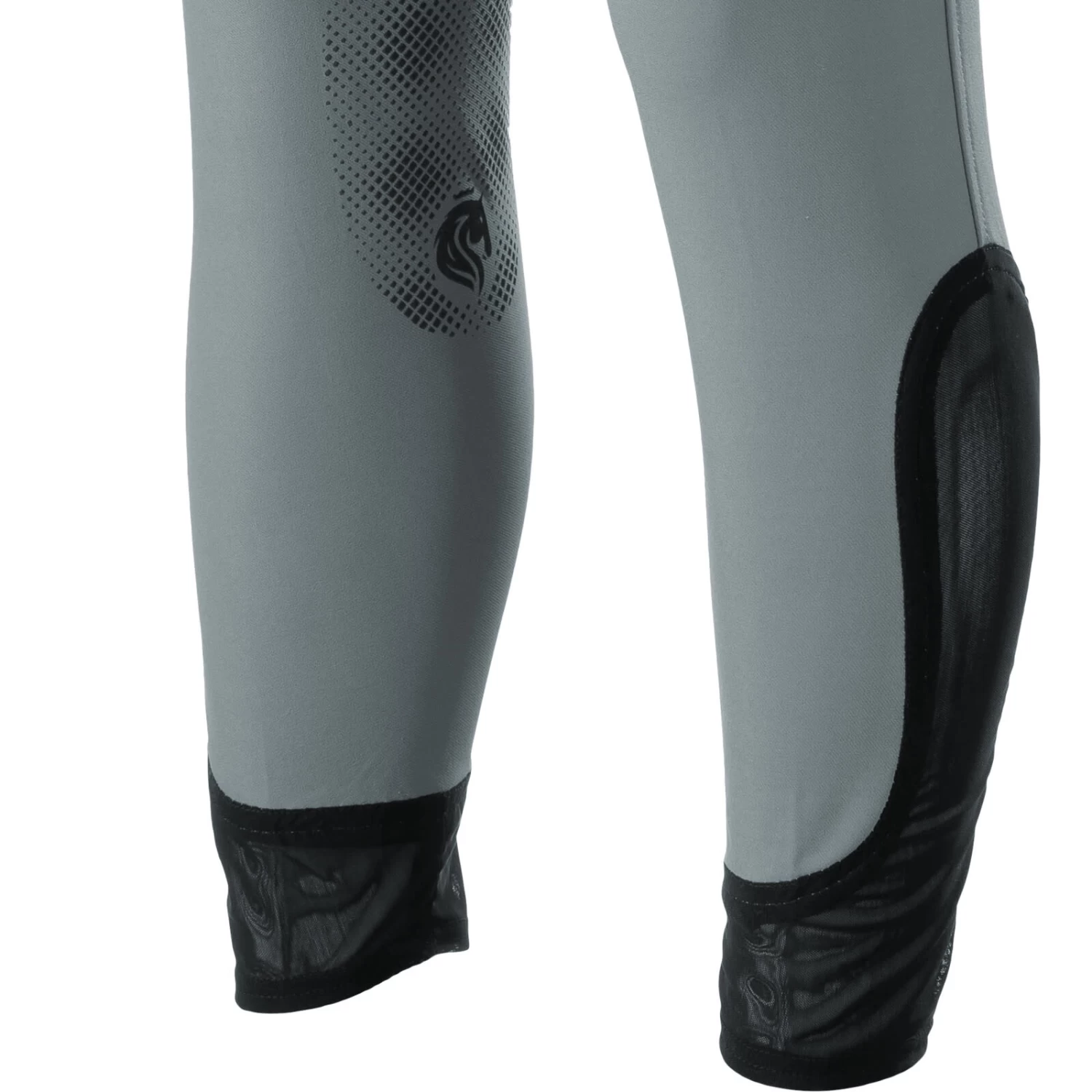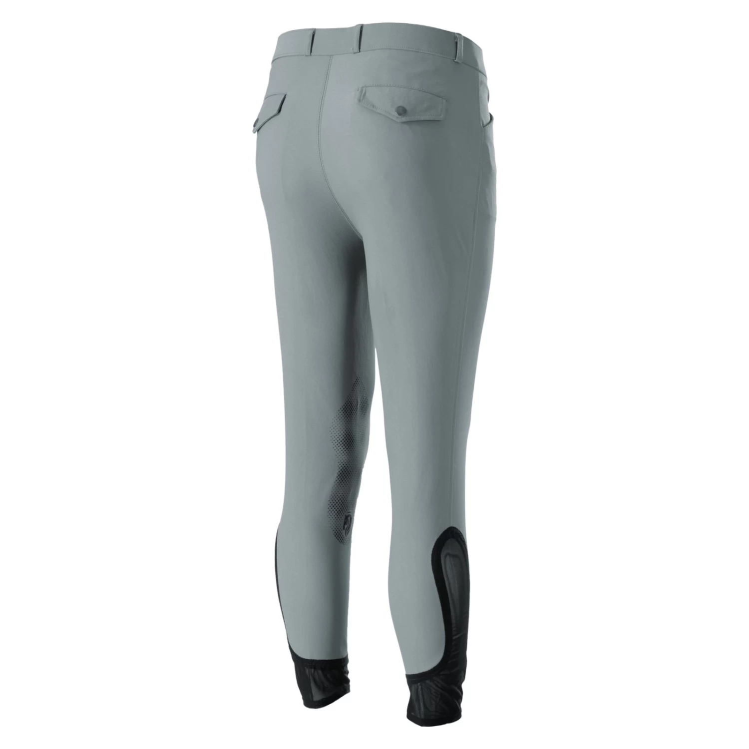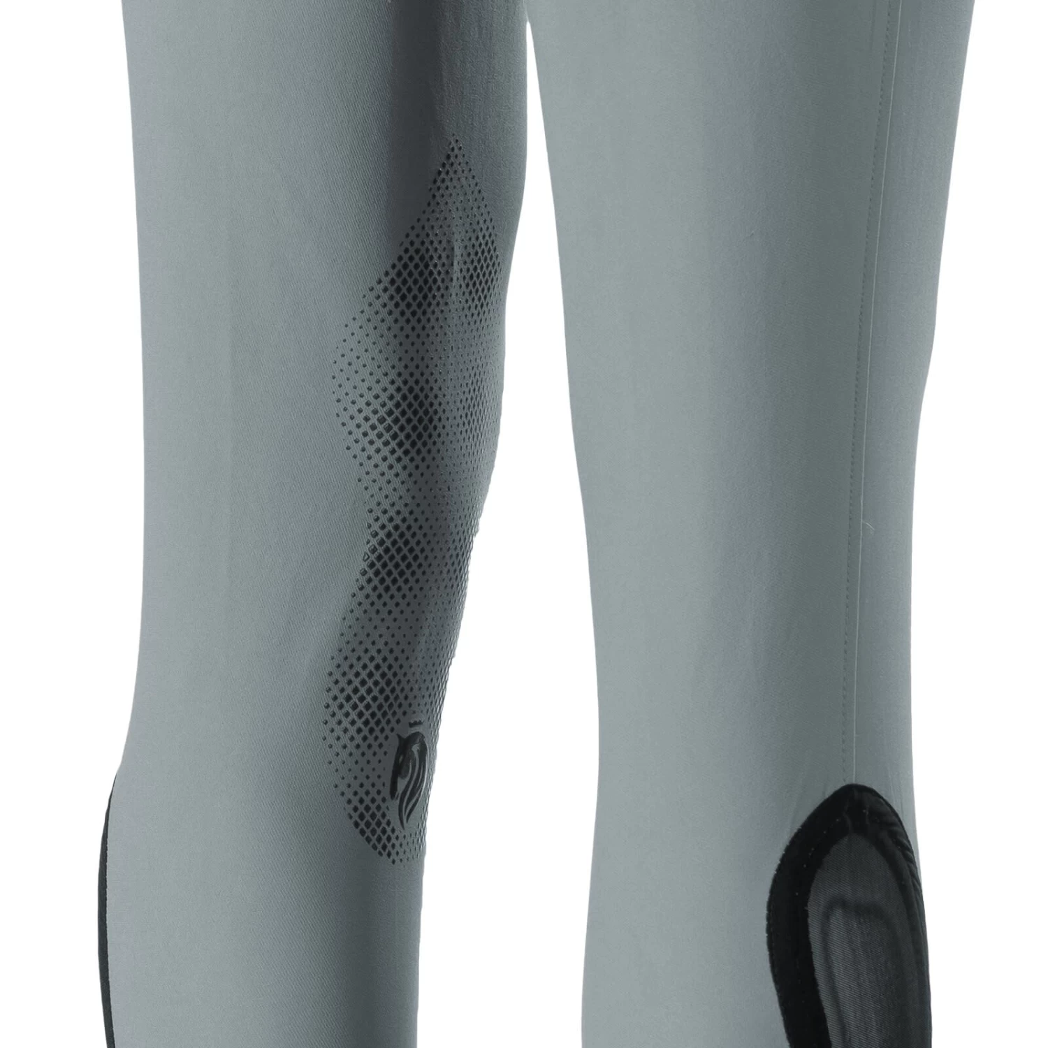 The fabric is high quality technical fabric with a lot of stretch from the spandex and offers moisture-wicking and quick-drying features. Spandex content provides just enough stretch to move with you comfortably and also helps with fabric shape retention and reduces waist gap and saggy knees. The fabric is lightweight, ideal for 3 season wear, and extra comfortable on warmer days. It has two front slash pockets with room for phone and treats along with two back flap pockets. The silicone grip on inner thighs is in a self subtle color for added hold when riding and the silicone grip inside the waist helps to keep shirt neatly tucked in. It features Gutos hook slide closure with internal reinforcement so only fabric touches and there is no hardware to pinch the skin. Durable and stretchy micromesh sock bottoms are added for minimal boot bulk. These are a must have!