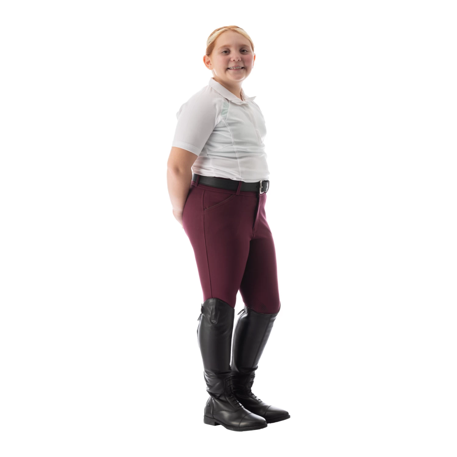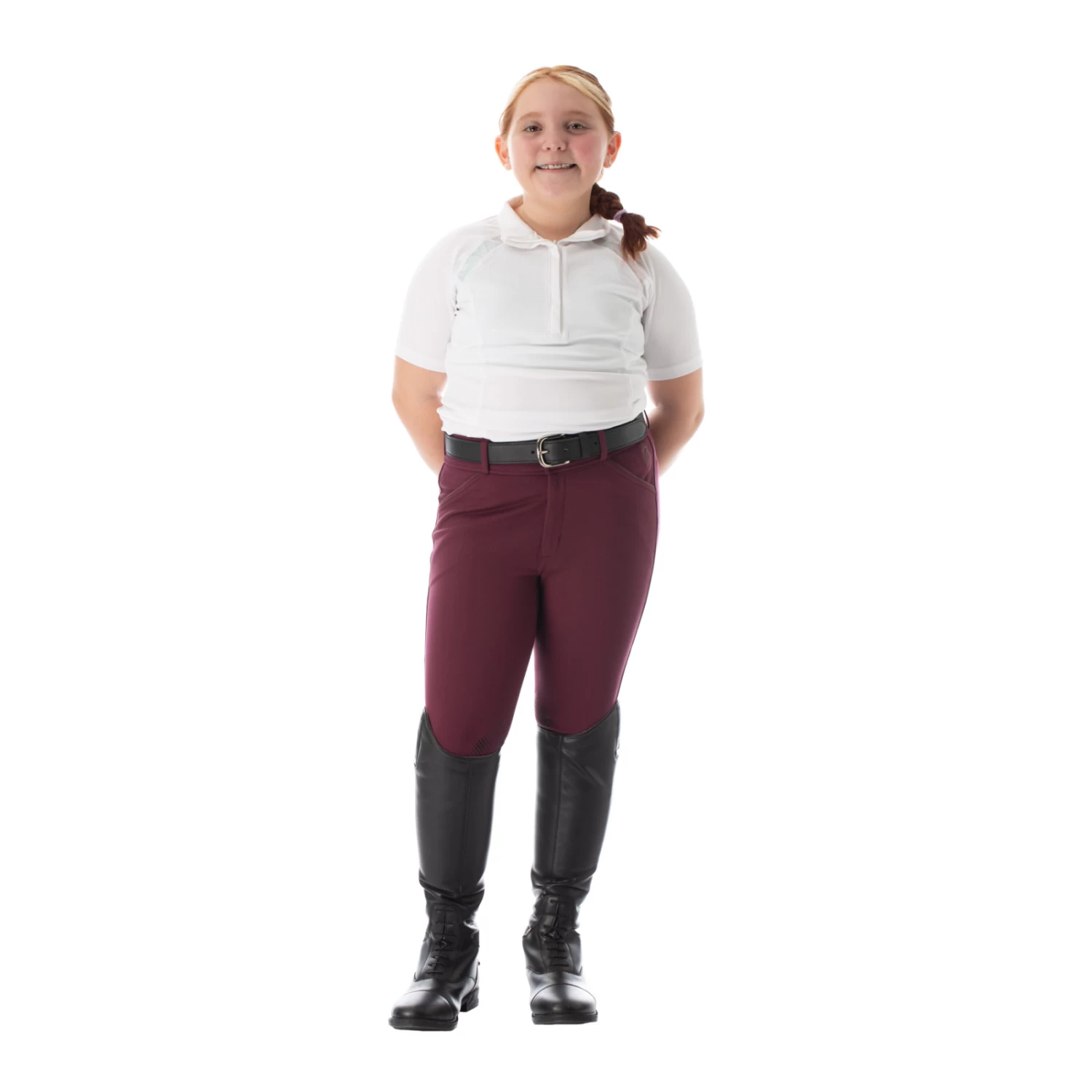Just like the Equinavia Astrid Womens Silicone Knee Patch Breeches, but for kids! Equinavia Greta Kids Silicone Knee Patch Breeches are an excellent option both in and out of the show ring! Mid-weight, ultra soft fabric with silicone knee patch grip keeps you secure in the saddle. Micromesh lower legs provides a streamlined look and feel under your boot, while keeping you cool. Great stretch and overall comfort in this breech. The Greta breeches are the ultimate choice combining function, comfort and style.