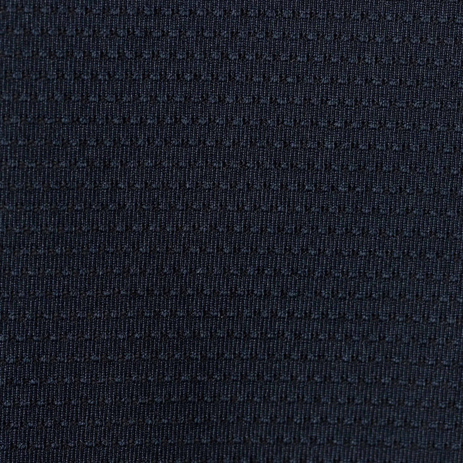 - Short sleeves and back are an extra lightweight perforated fabric in navy blue for added breathability