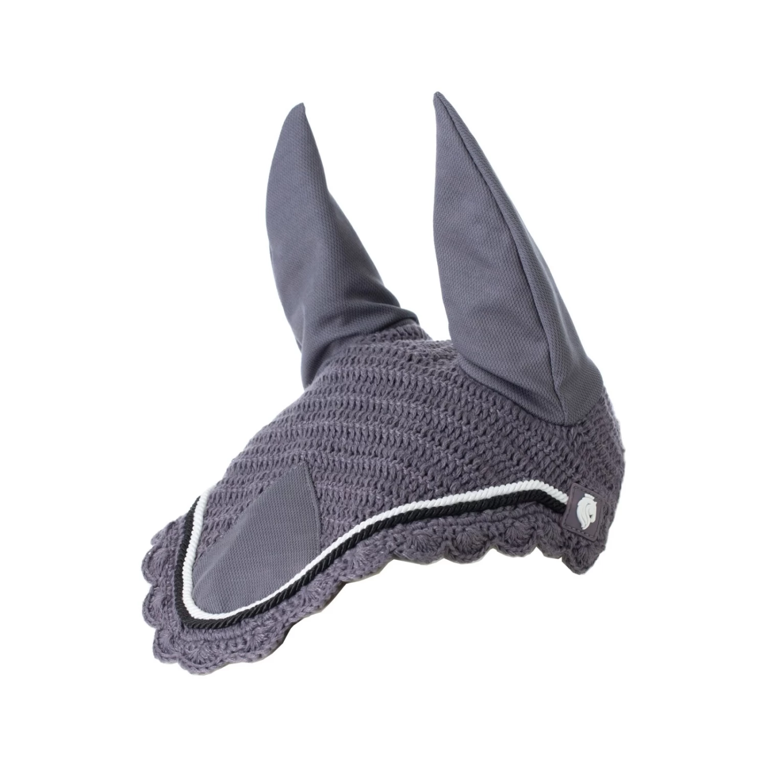 A stylish, hand-crocheted ear net for fly or noise protection.