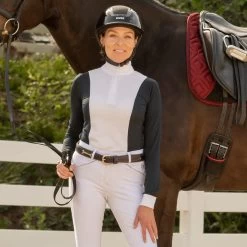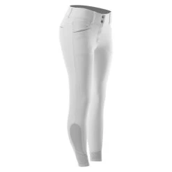 The Equinavia Victoria Womens Silicone Knee Patch Breeches are made of high quality technical fabric that is breathable, moisture-wicking, and quick-drying. Spandex provides stretch for maximum freedom and support while keeping its shape. Silicone grip knee patches offer ultimate security in the saddle, while mesh at the lower legs keeps you cool and streamlined underneath the boots. Finished with a silver lurex logo on the left pocket as well as silver piping and crystals on the front pocket and the back fake pocket will make you stand out in the ring.