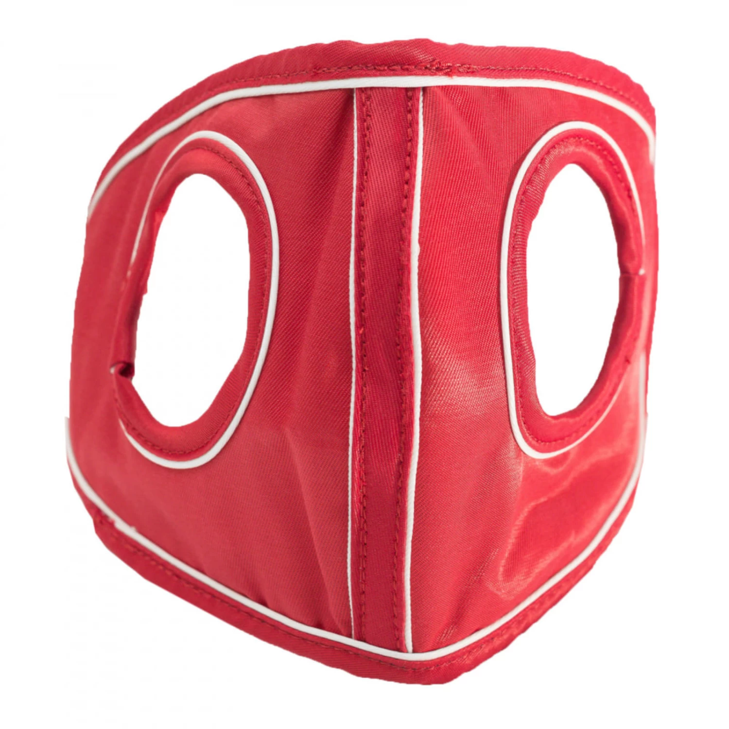 This poll guard is designed to be used under the bridle and features no ear coverage for comfort. It is made of durable enstex and features a cushioned wool lining. Available in a bright array of colors.