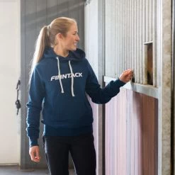 This pullover sweatshirt features a lined hood with drawstrings, a front kangaroo pocket, cuffed sleeves, and the sporty Finntack logo on the chest. As a layering piece or a stand-alone top, this sweatshirt is perfect for cool days at the barn. Offered in unisex sizing and a relaxed fit for superior comfort and freedom of movement.