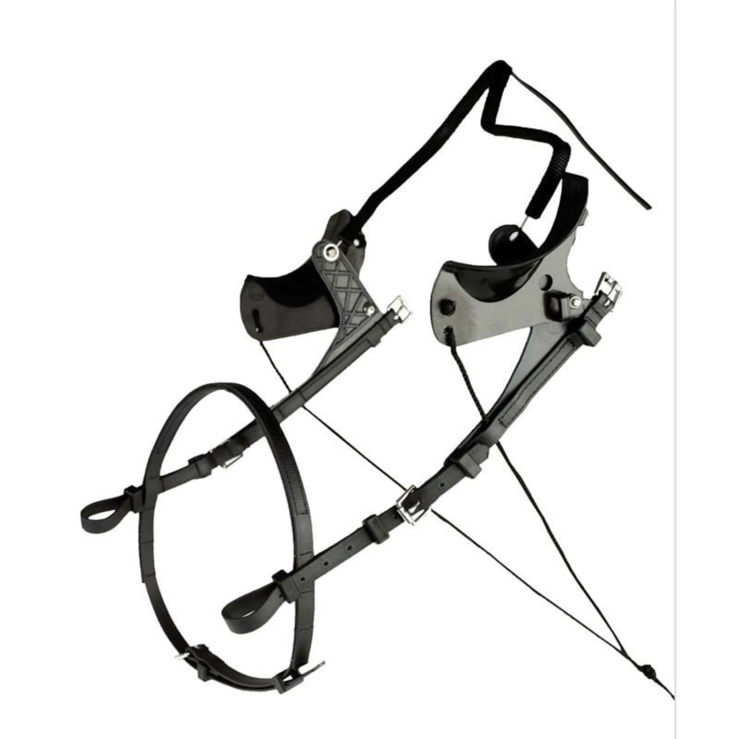 The Finn Tack Pull-Down Kant-See-Back Blinds for Harness Horse Racing have beta-coated webbing on the cheeks and bendable middle wire to fit your horse’s head. The noseband has four different slots to adjust the height of the cheeks. 100% Synthetic.
