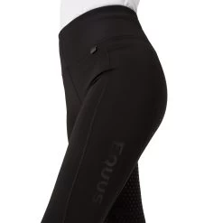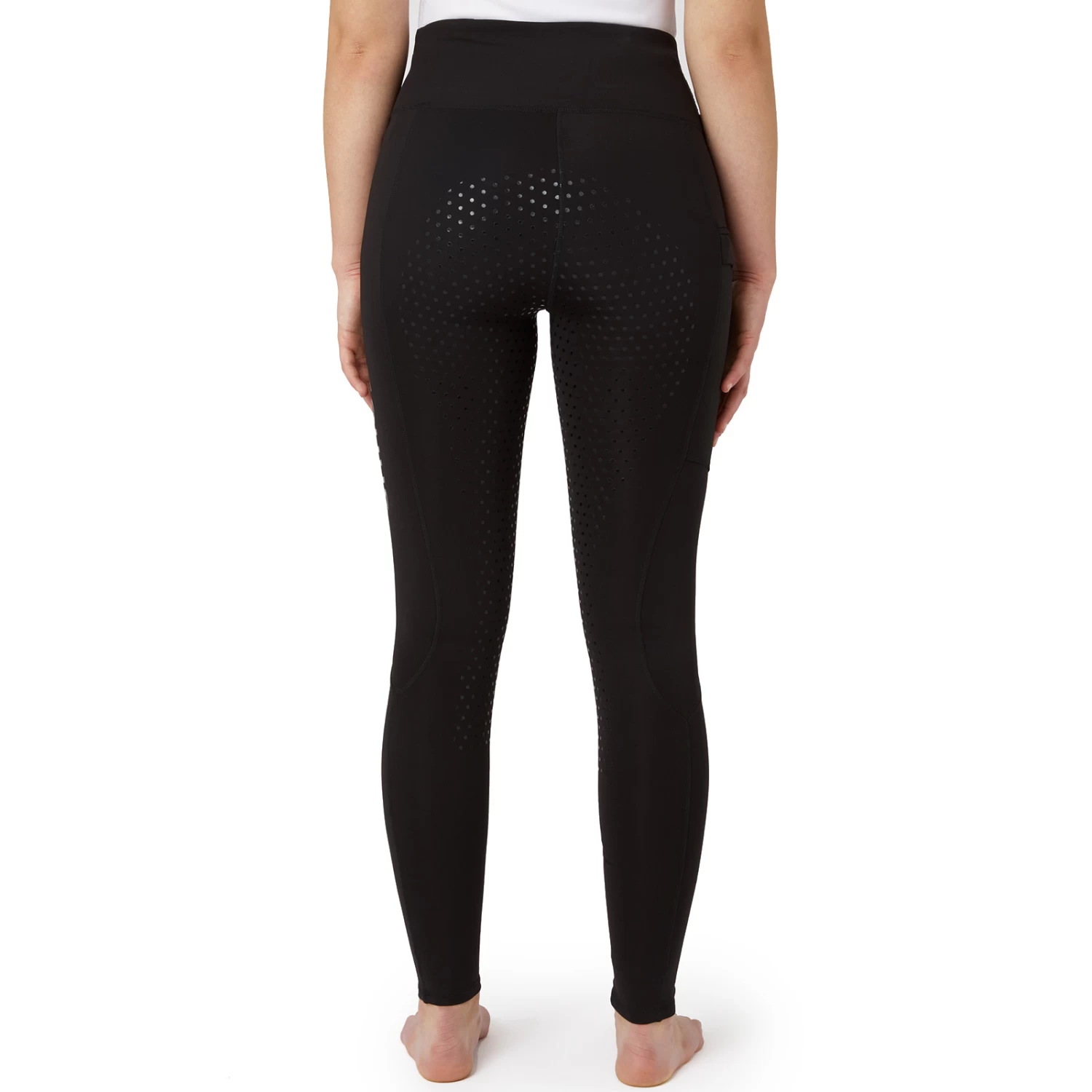 Mesh leg bottoms easily fit under your boots and jodhpurs. A zipper pocket on the thigh holds your phone. The silicone full seat keeps you safely in the saddle, and is designed without seams for a flattering shape. The elastic waist does not restrict your movement, and is ideal for tucking your favorite shirt in.