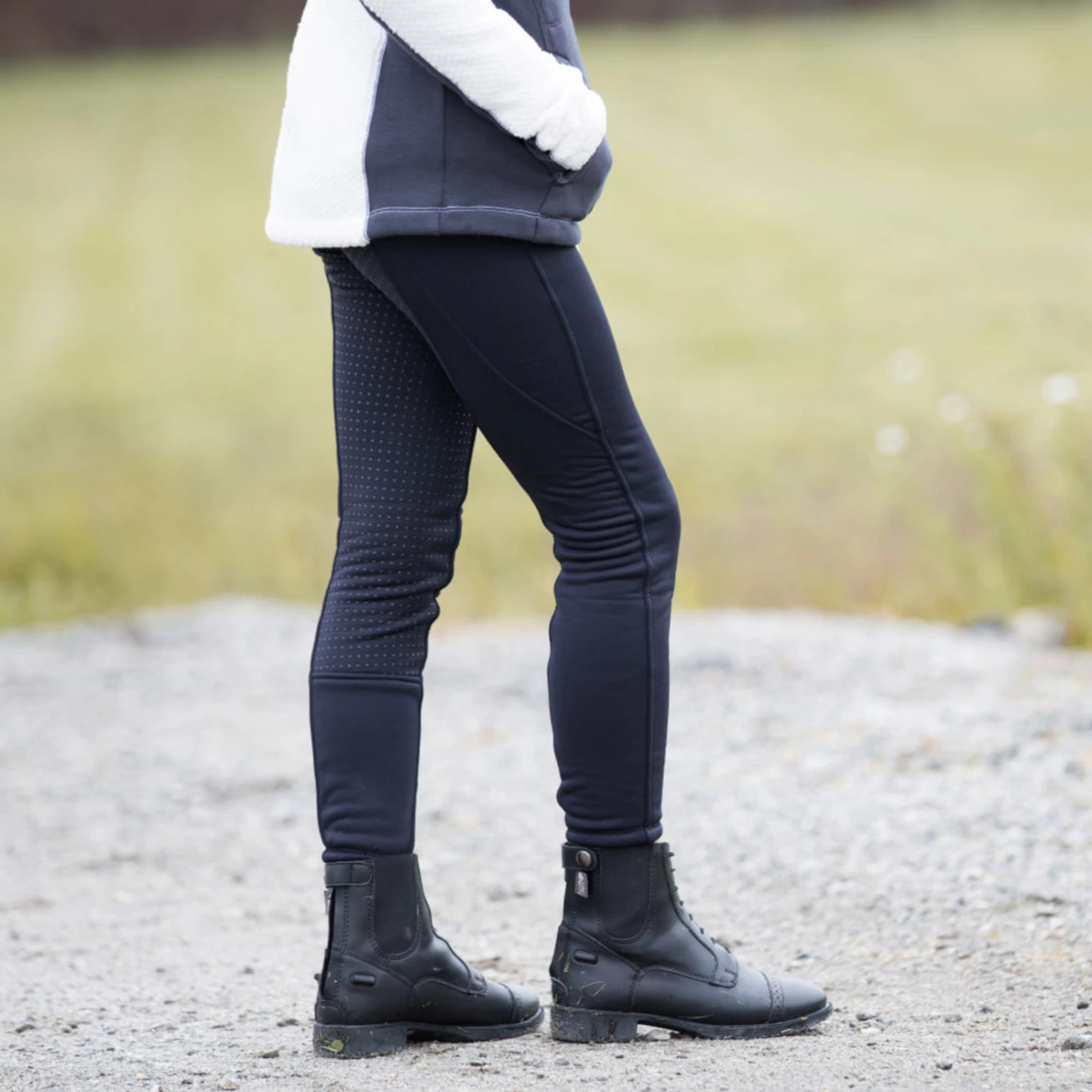 These full seat tights have a warm fleece lining that makes these riding tights a wintertime favorite! The soft, breathable fabric with brushed fleece lining is ideal for holding warmth in to keep you feeling cozy even on cold weather rides. The mid-rise waist is perfect for layering and the simple front closure won’t feel binding in the barn or in the saddle. For added security, the silicone full seat adds a little extra grip to keep you secure in the saddle on those days when your horse is feeling a little frisky.