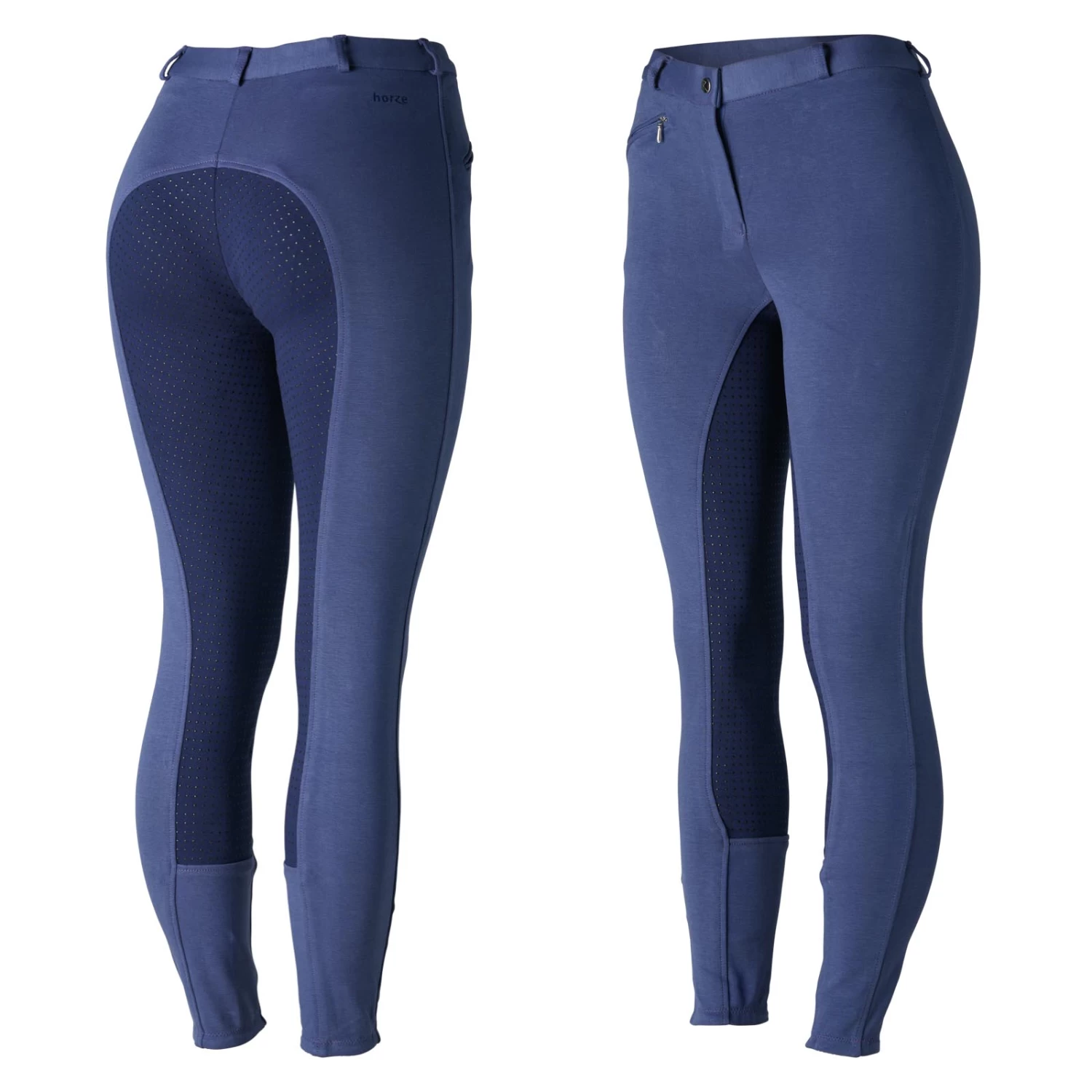 The Horze Women’s Active Full Seat Breeches with Silicone Grip feature a jersey-feel fabric that gives these schooling breeches soft comfort. These riding breeches are a nice choice when you don’t want the formality of other high-end breeches. The soft fabric is warm, breathable and ideal for afternoon rides around the stable or on long trail rides. The simple zipper pocket in the front will hold a single horse treat for rewarding a nice ride. You will love the comfort of these pretty breeches.