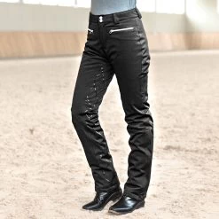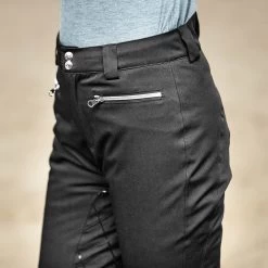 The Horze Women’s Adeline Full Seat Silicone Grip Bootcut Breeches will help to keep you warm in and out of the saddle. These stylish, comfortably padded, winter pants are designed with waterproof, windproof and breathable fabric, along with a technical silicone print at the full seat for great grip in the saddle. A back high waist design provides both a great fit and a perfect shape. These popular, bootcut styled, women’s breeches feature an updated adjustable waist with hook-and-loop straps for a custom fit. Further included are convenient front zipper pockets that are perfect for storing keys or carrots, as well as zipper openings to the knee. 3000mm waterproof, 3000mvp.