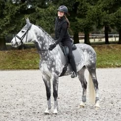 - Two-Toned Trim – Soft, eye-catching webbed trim and a small Horze logo embroidery at the withers gives this saddle pad a clean look.
