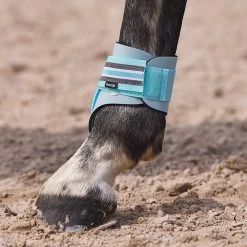 Horze Adepto fetlock boots come in bright colors and are easy to use. Strong hook-and-loop straps keep them safely in place. A durable shell protects your horse’s legs, and soft neoprene lining adds shock-absorbing qualities. Pair with Adepto brushing boots (#19203) and saddle pad (#17343 or #17353) for a full look.