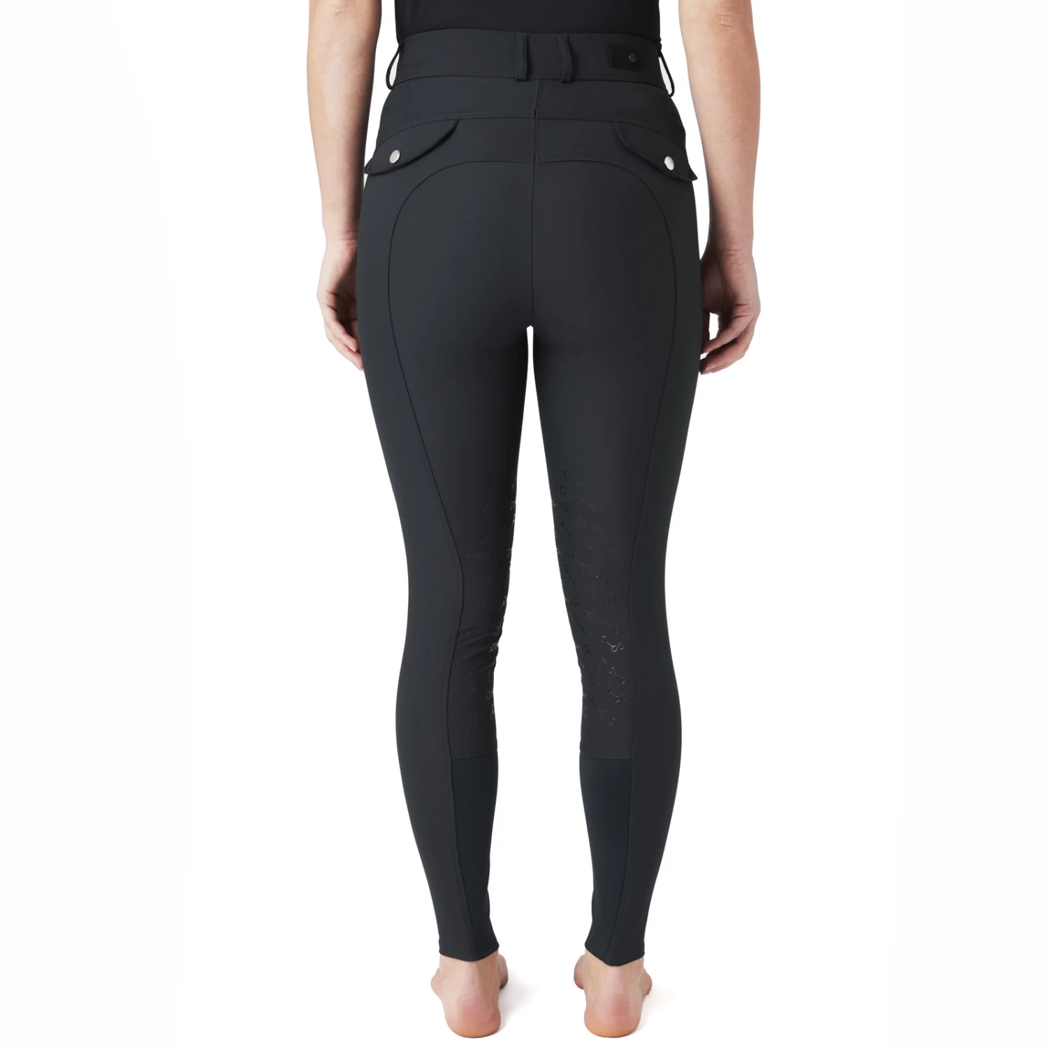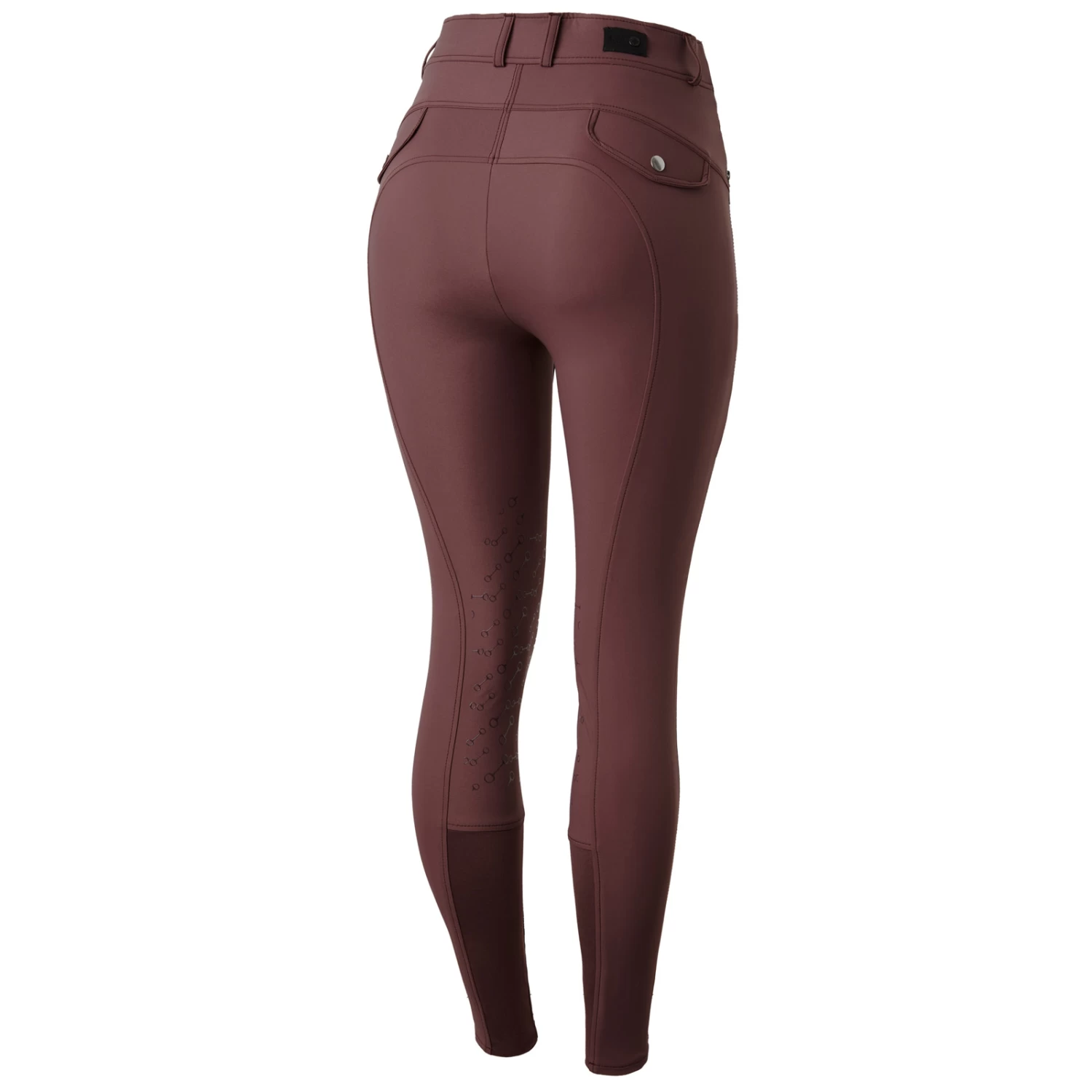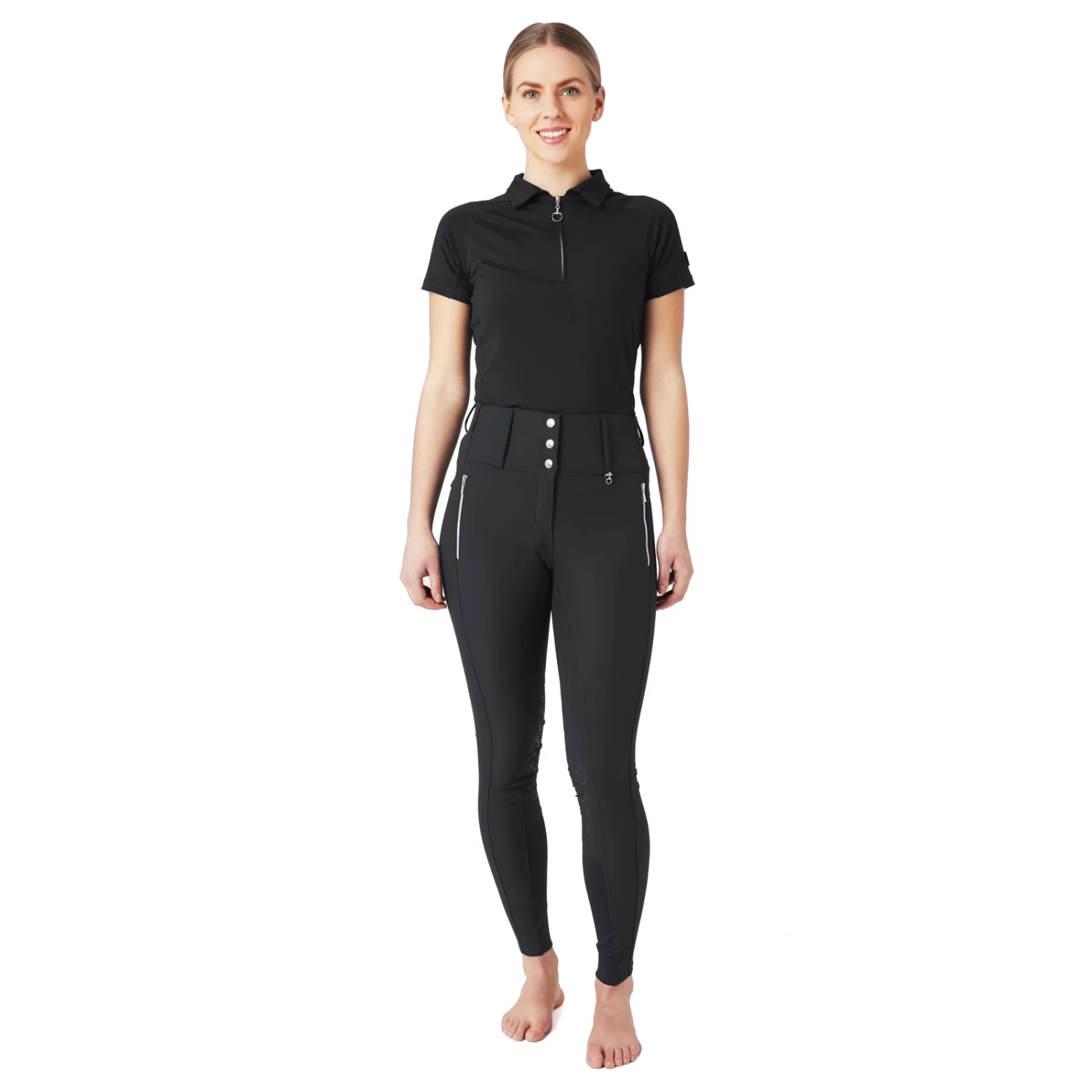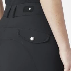 The Horze Andrea breeches are decorated with flattering seams down the front that elongate your legs. The waistband with three buttons is higher in the front, adding a stylish detail. Two zipper pockets offer space for your belongings, and the silicone knee patch keeps you flexible in the saddle.