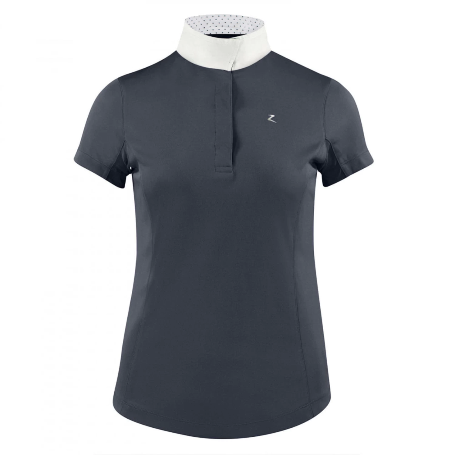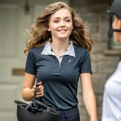 This lightweight show shirt with added technical features is a perfect choice for competing in hot weather. The short sleeves with mesh panels improve airflow, while the Nanotex® fabric offers maximum breathability and UPF 30+ protection from the sun. This quick-drying top features a fitted style and a classy collar with hidden snap buttons for a smooth and polished look under your show jacket.