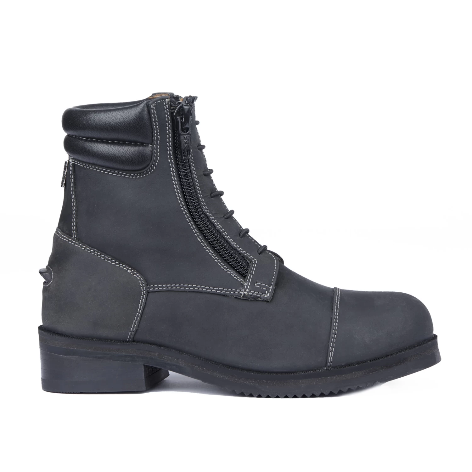 Our Horze Blake jodhpur boots are beautifully made from soft leather, and therefore are perfect for training, stable days or everyday life. Their timeless design matches your little rider’s wardrobe easily. Decorative laces don’t have to be opened since there is a front zipper for easy access. An elastic insert makes them more flexible. Leather reinforcement at the back ankle and the sturdy sole ensure secure hold in stirrups or on wet ground. Gorgeous contrast stitching adds a subtle eye catching element.
