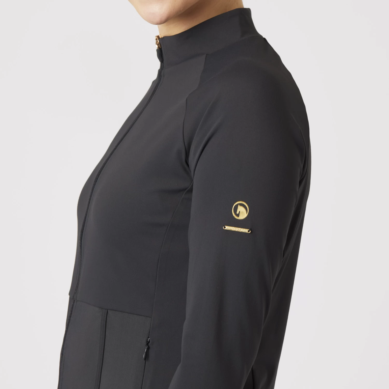 Our Horze Ciandra training jacket is made from functional, quick-drying material that is ideal for daily riding. Soft fabric is super comfortable and flexible so that you can move freely. Mesh details at the front add extra breathability. They are designed in a corset structure that looks super flattering and chic. The fabric also protects you from the sun with UPF 50+, making this jacket perfect for summer. Combine it with our Horze Ciandra training shirt, riding tights and riding gloves for a full outfit.