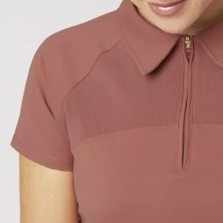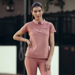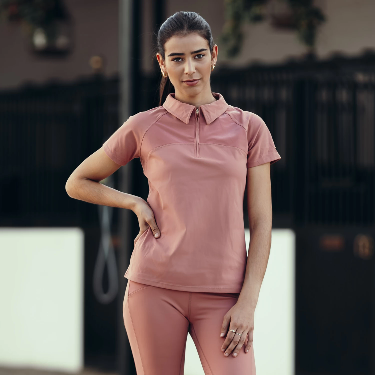 The functional and soft Horze Ciandra shirt is perfect for active riding. Quick-drying fabric is breathable with mesh details at the front. The shirt also protects you from the sun. The front zipper adds ventilation and comfort. Small gold details add an elegant touch. Pair this shirt with our Horze Ciandra riding tights, training jacket and riding gloves for a full outfit.
