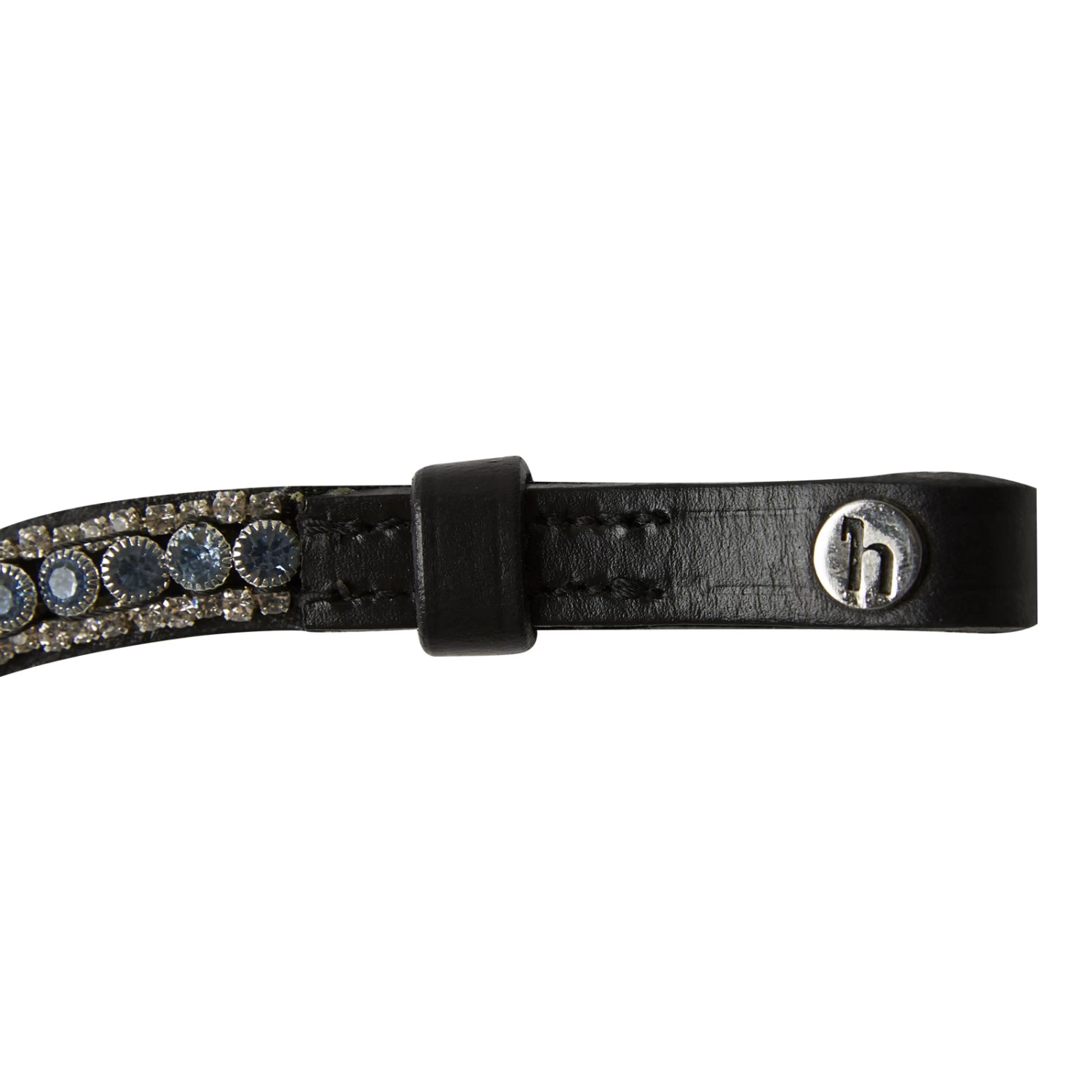 The Horze Columbia brow band is designed in a lovely bow shape, and equipped with three rows of crystals. Hook-and-loop fasteners make it super easy to attach to your favorite Horze bridle.