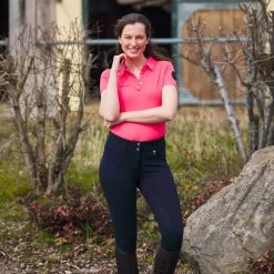 The Horze Denise Functional Pique Shirt is functional and made from breathable fabric. Its quick drying quality makes it the perfect shirt for everyday training. The vibrant colors will brighten your wardrobe. The metal detail at the chest is a subtle finishing touch.