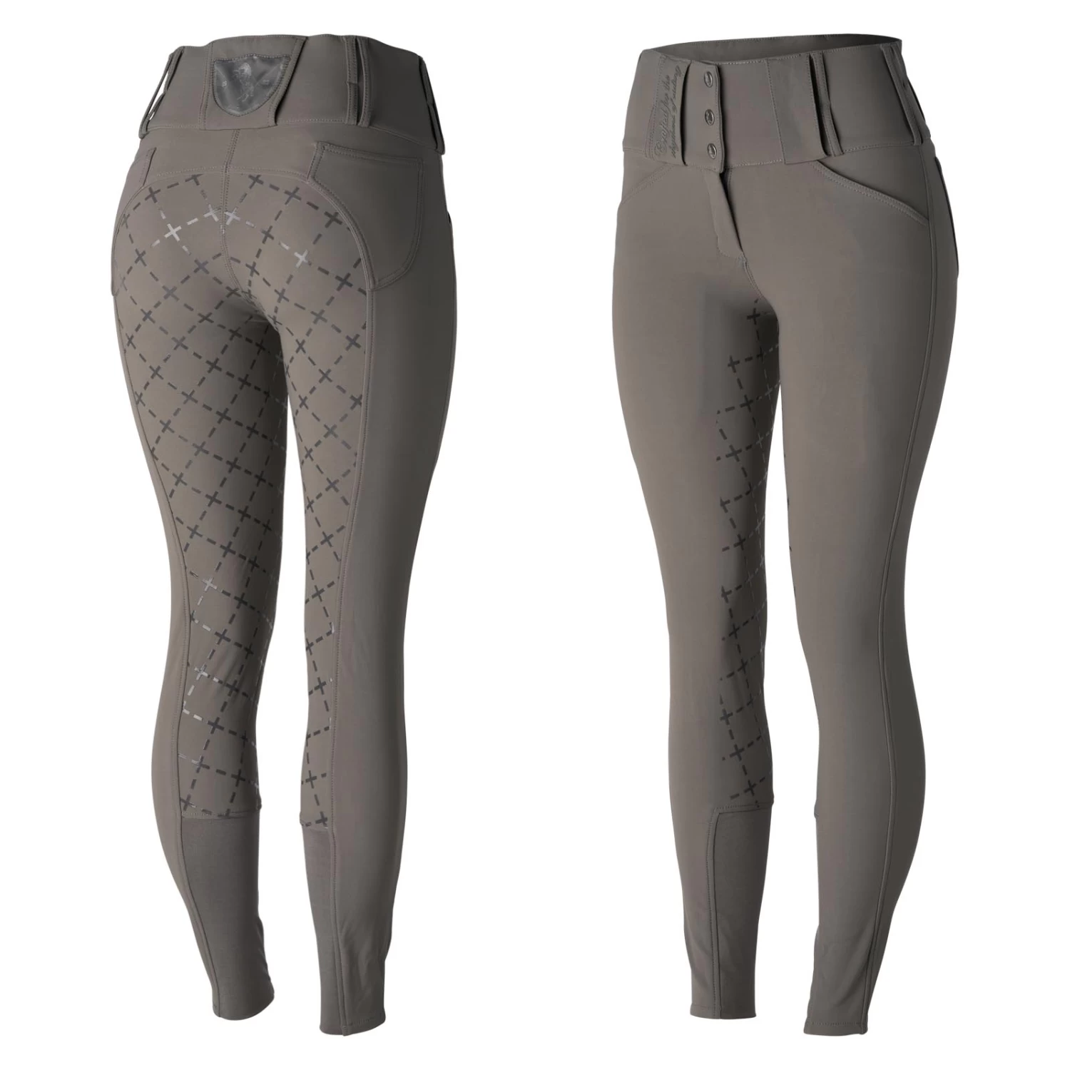 These stunning high waisted breeches have a cool silicone pattern for style and functionality and will help you stick like glue to the saddle. The breathable fabric retains its shape while repelling dirt and water so you always look your best. The extra high waist supports your seat whilst holding your tummy in. These breeches also have belt loops for extra practicality. Get these great breeches today and be a trendsetter in your barn!
