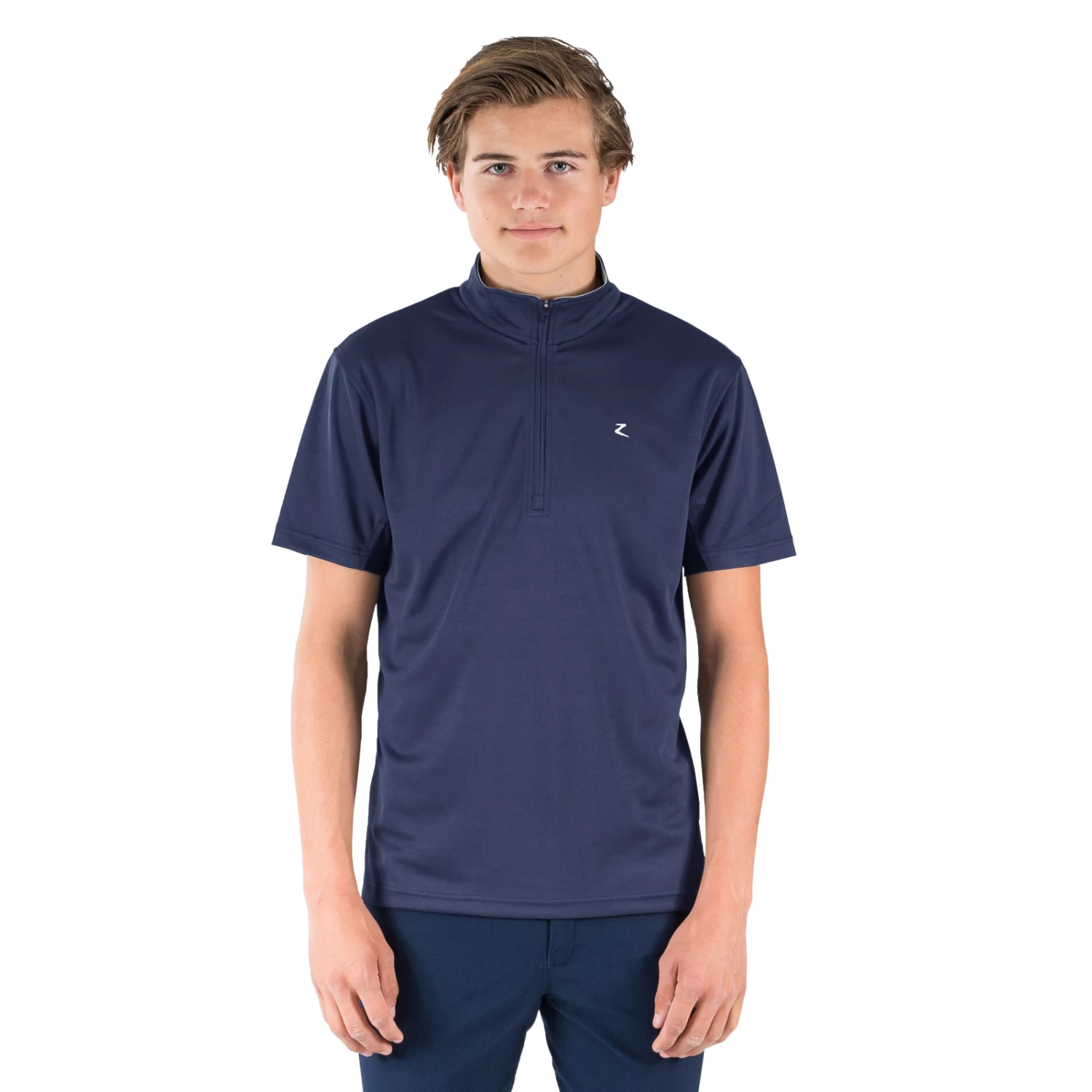 This men’s sun shirt is offered with fresh styling and technical designs for maximum comfort. The soft and stretchy fabric is breathable and quick-drying with UPF 30+ protection from the sun. Mesh details under the sleeves improve airflow and the zip front lets you wear the collar down to show off the contrasting color on the inner lining, or flipped up over your neck. Ideal for riding and training, working out, or casual wear, this colorful shirt is the perfect addition to any summer look.