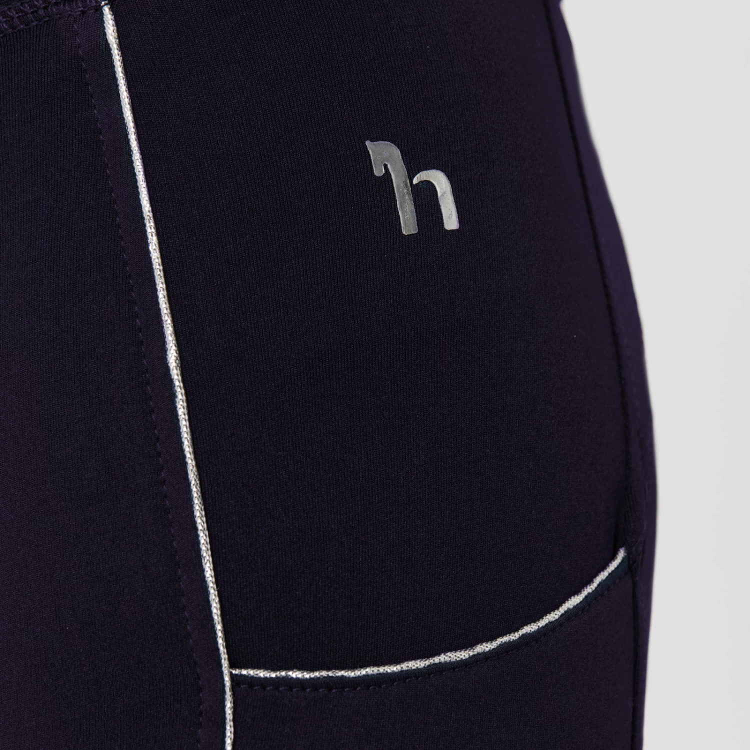 The Horze Ella riding tights are made from functional breathable material that wicks away any moisture. Thigh pockets offer space for a phone. Silver piping adds a sporty touch. The silicone full seat keeps little riders safely in the saddle. Pair these tights with our Horze Ella sweatshirt for a full look!