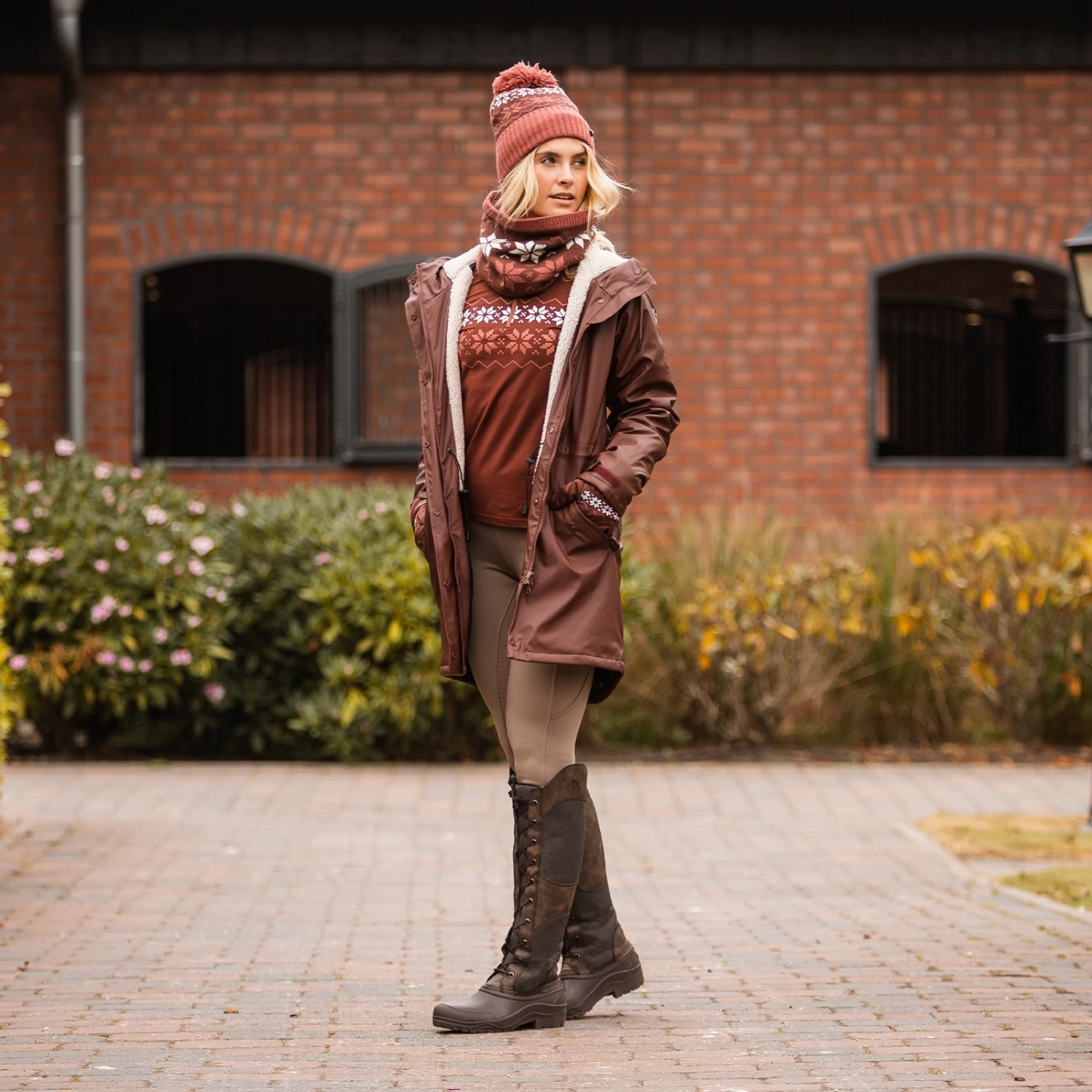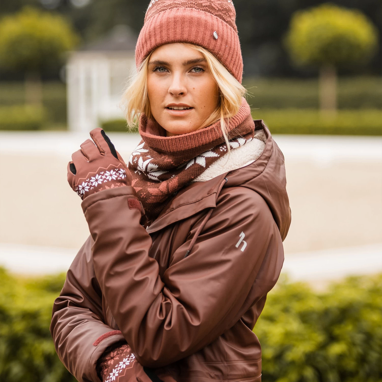 The Horze Emily tube scarf is made from soft knit. Fleece adds extra warmth. The pretty snowflake design can easily be incorporated into your winter riding wardrobe. Pair this scarf with our matching Horze Emily hat, gloves and shirt for a full look!
