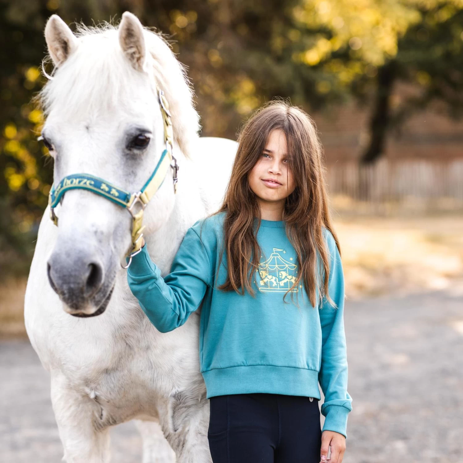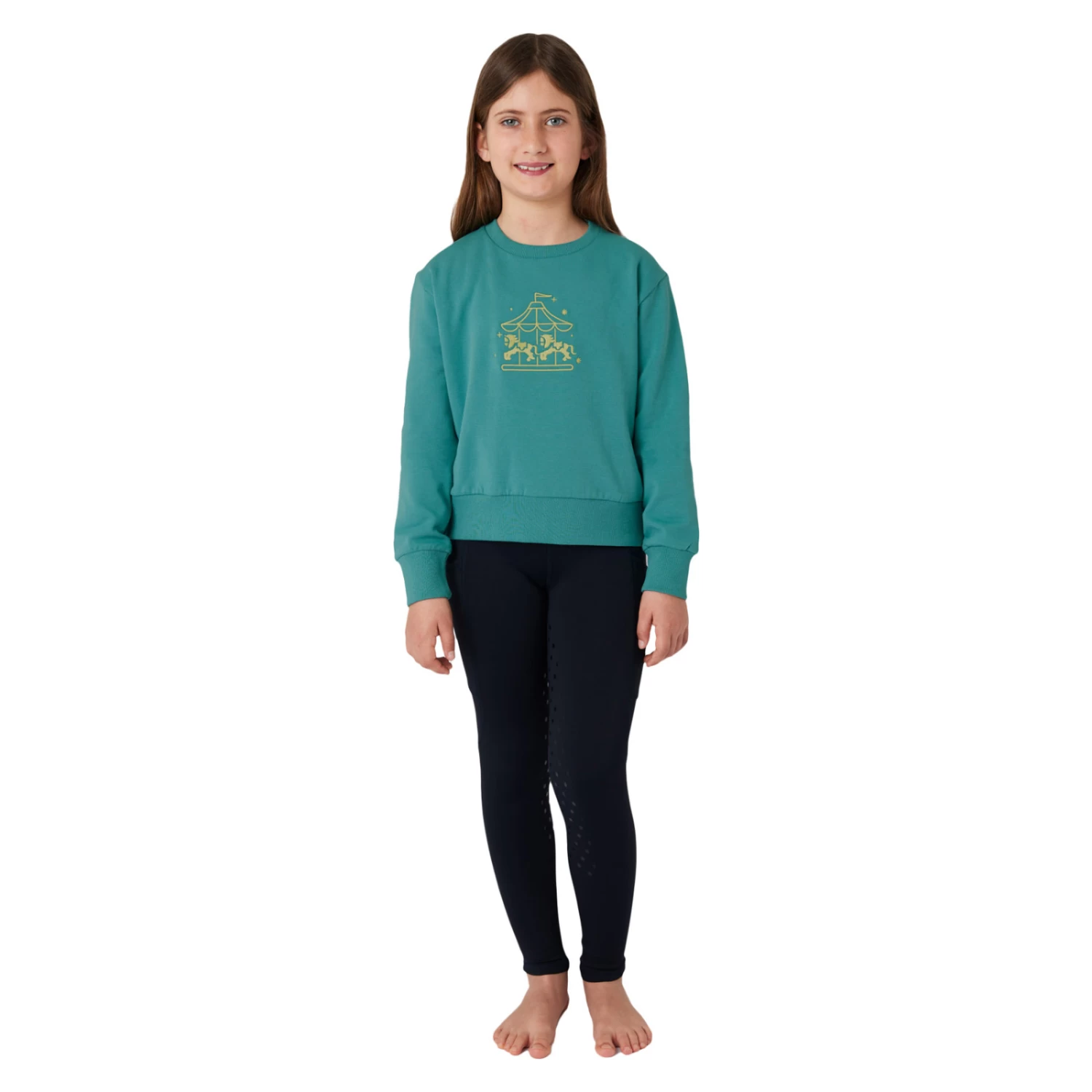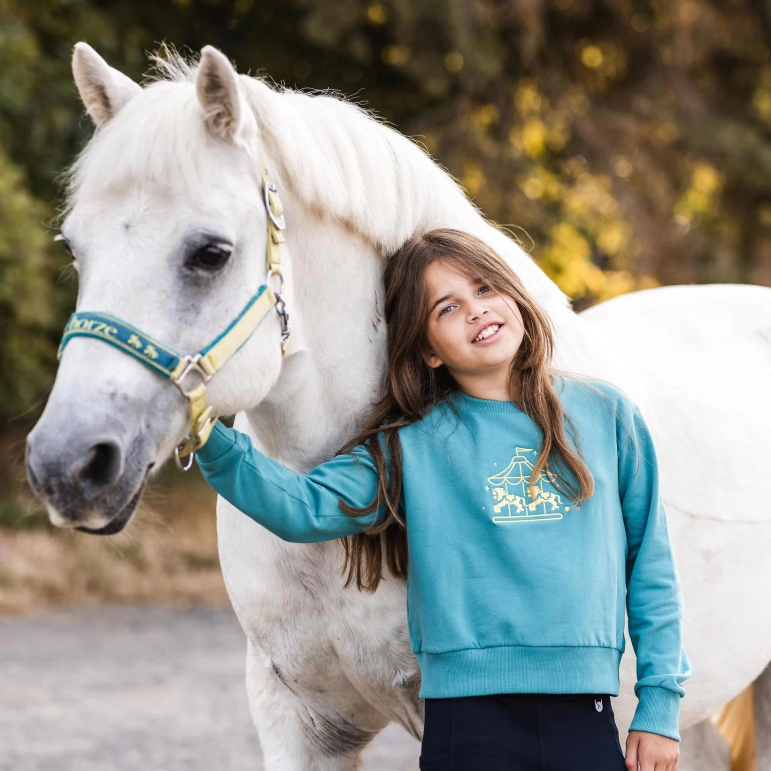 Match your pony’s outfit with the Horze Emmalyn Kids’ Sweater. The front is adorned with a delicate Magical Carousel embroidery. Softly brushed inside for added warmth.