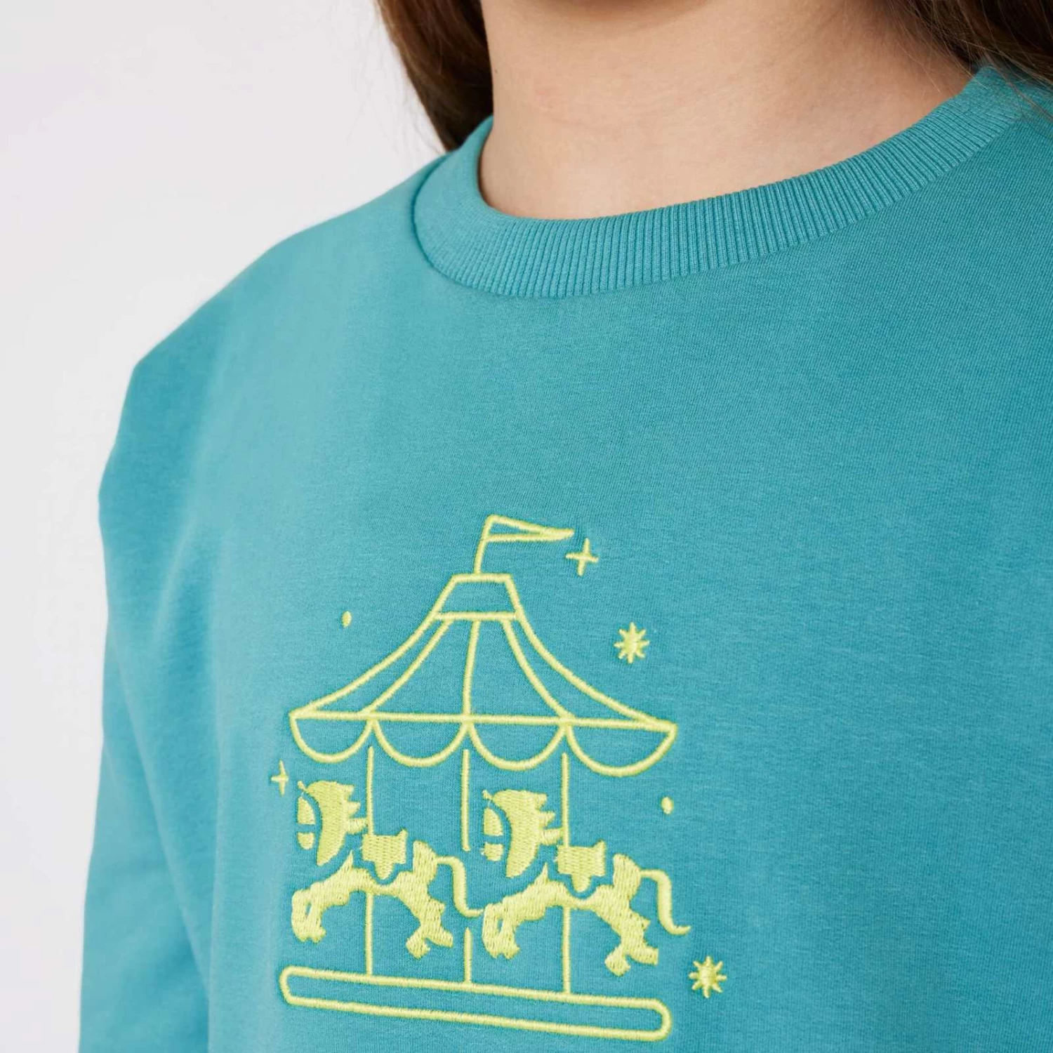 Cute kids’ sweater matchig the Magical Carousel collection.